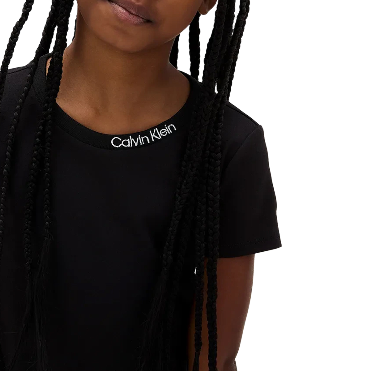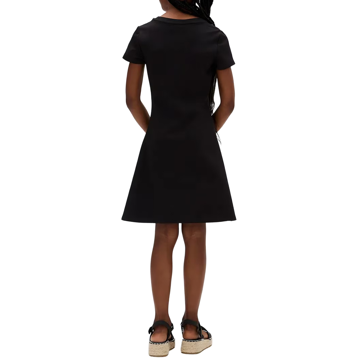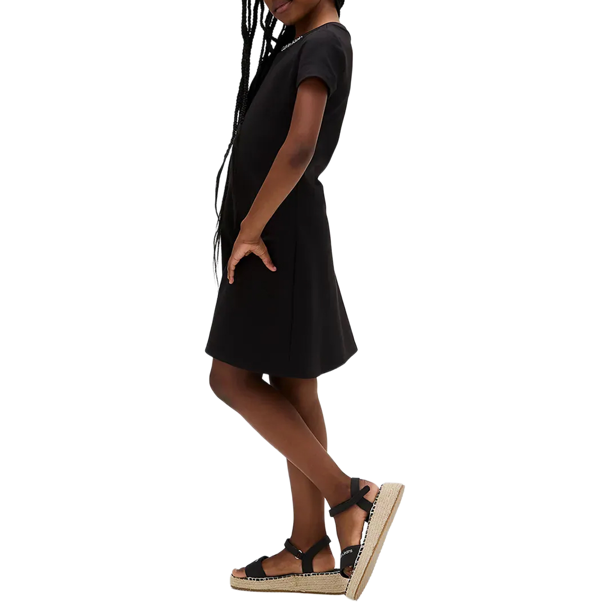 KNEE-LENGHT DRESS, FOR GIRLS, ROUND NECK, SHORT SLEEVES, SOLID COLOUR, WITH LOGO