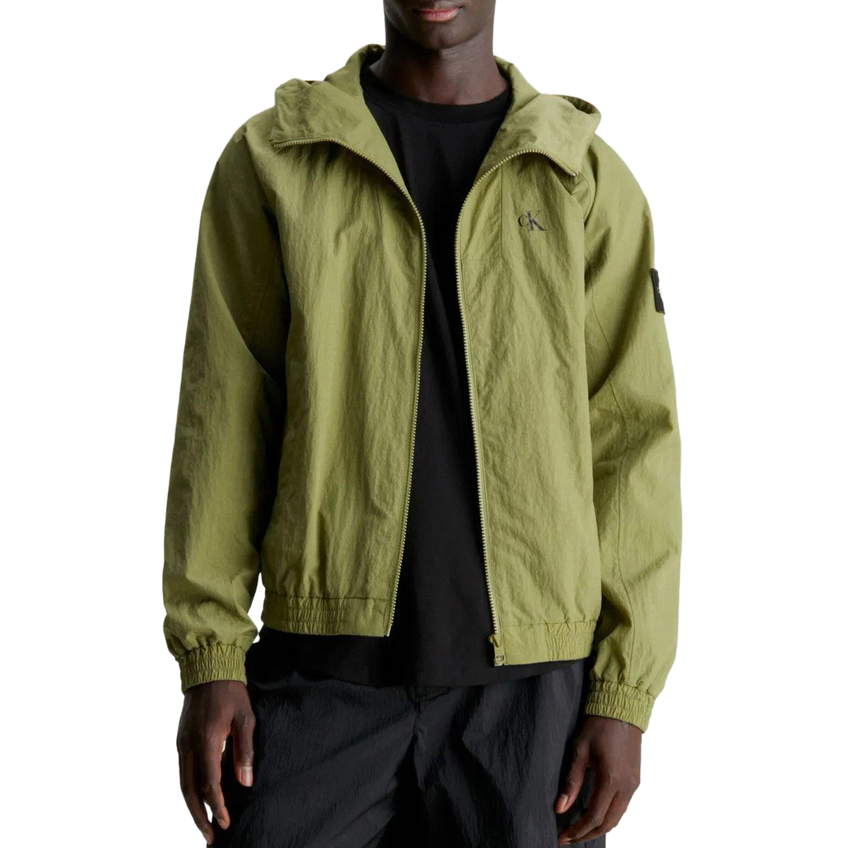 LIGHT JACKET, FOR MEN, POCKETS, DRAWSTRING HOOD, SOLID COLOUR, WITH LOGO, ZIP CLOSURE