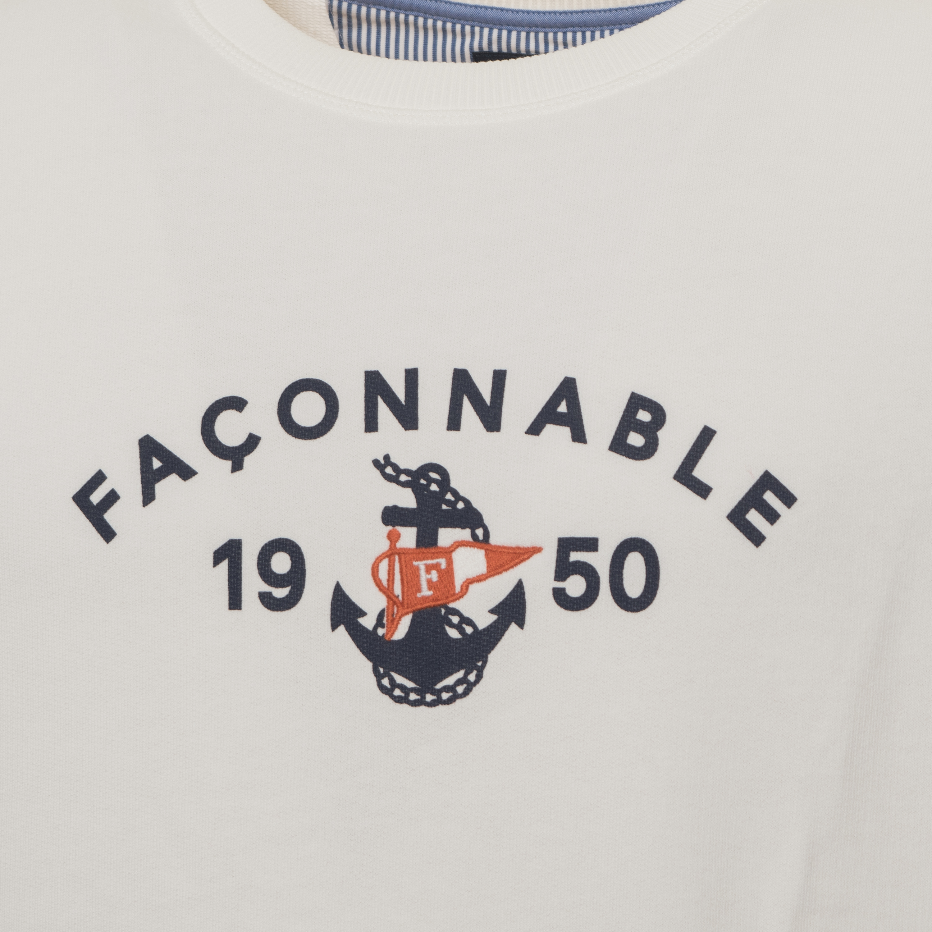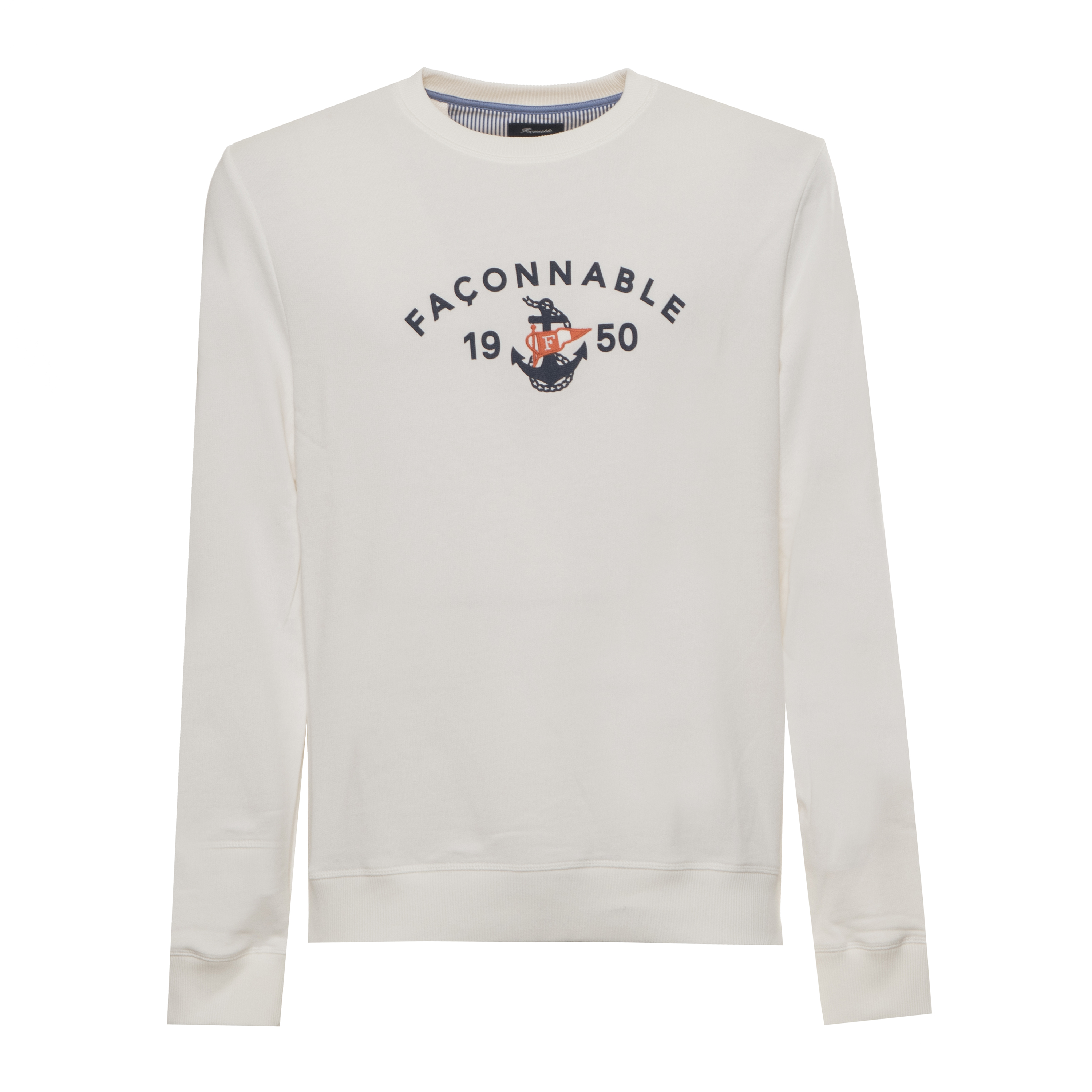 Tato mikina ANCHOR SWTSHIRT od FACONNABLE je výrazem tradičního řemesla v moderním pojetí. Klasický střih s kulatým výstřihem doplňují žebrované náplety, které definují pevnou strukturu oděvu a zajišťují stálost tvaru. Grafický potisk na hrudi odkazuje na bohatou historii značky a dodává produktu rozpoznatelný, prestižní prvek.
