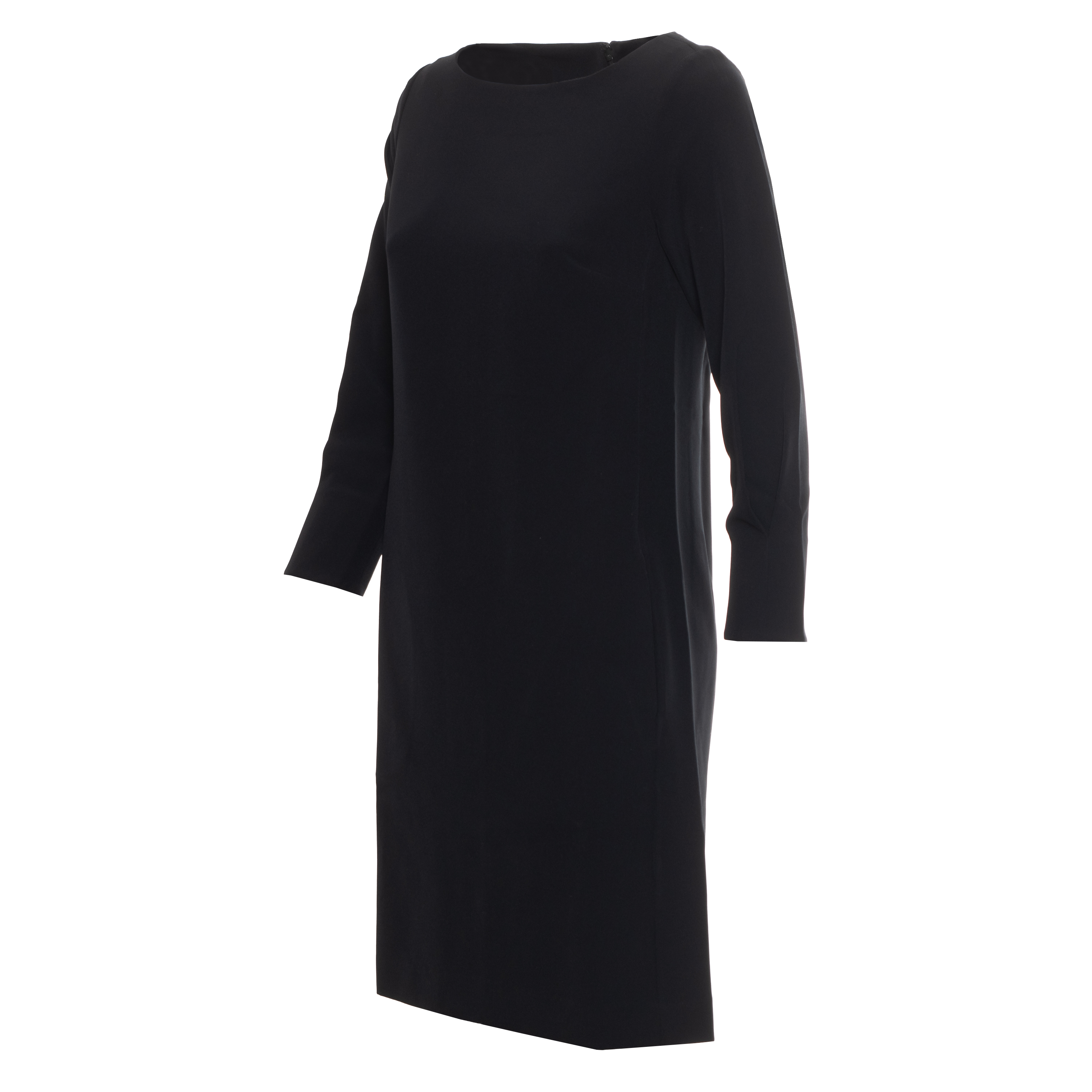 KNEE-LENGHT DRESS, FOR WOMEN, ROUND NECK, THREE-QUARTER SLEEVE, SOLID COLOUR, ZIP CLOSURE