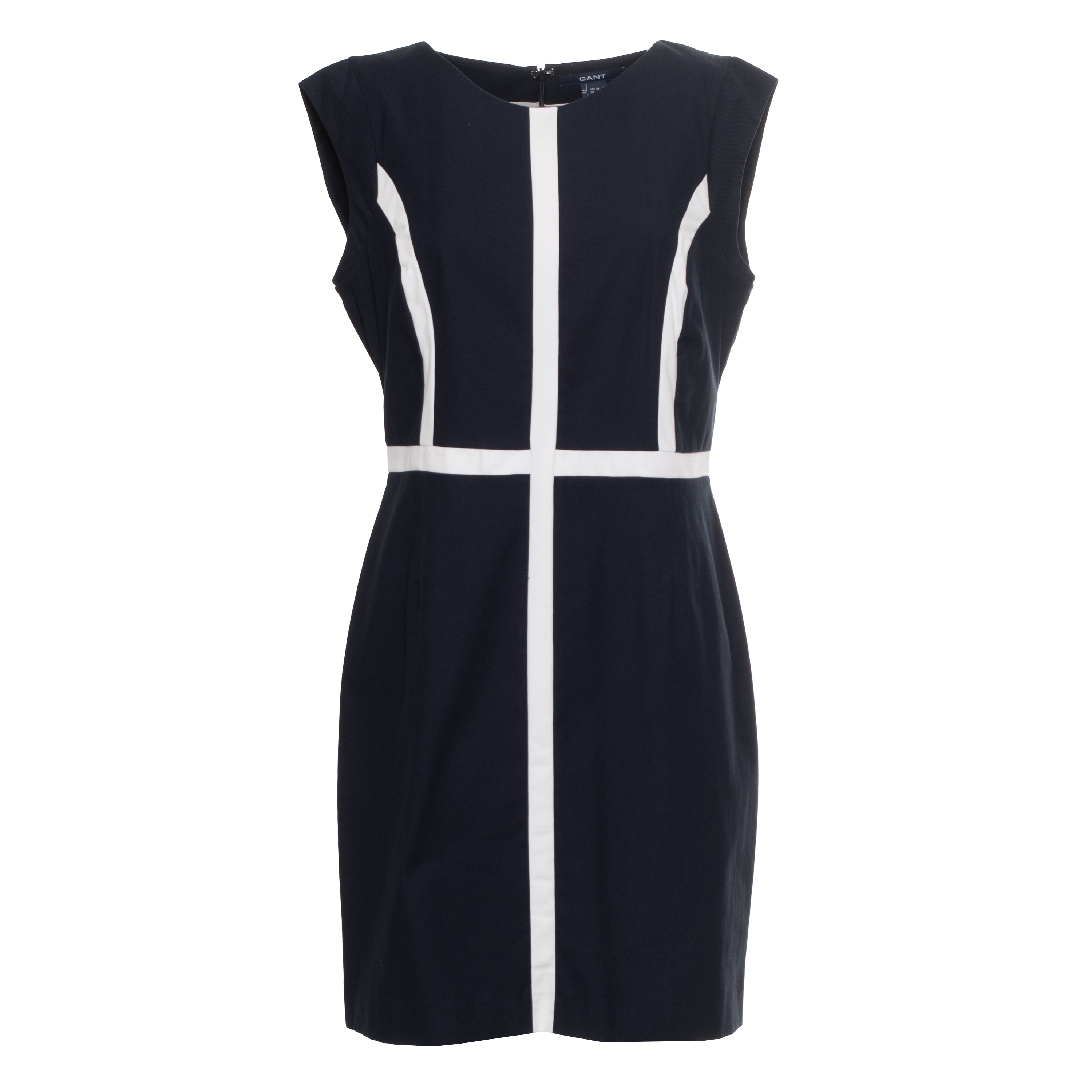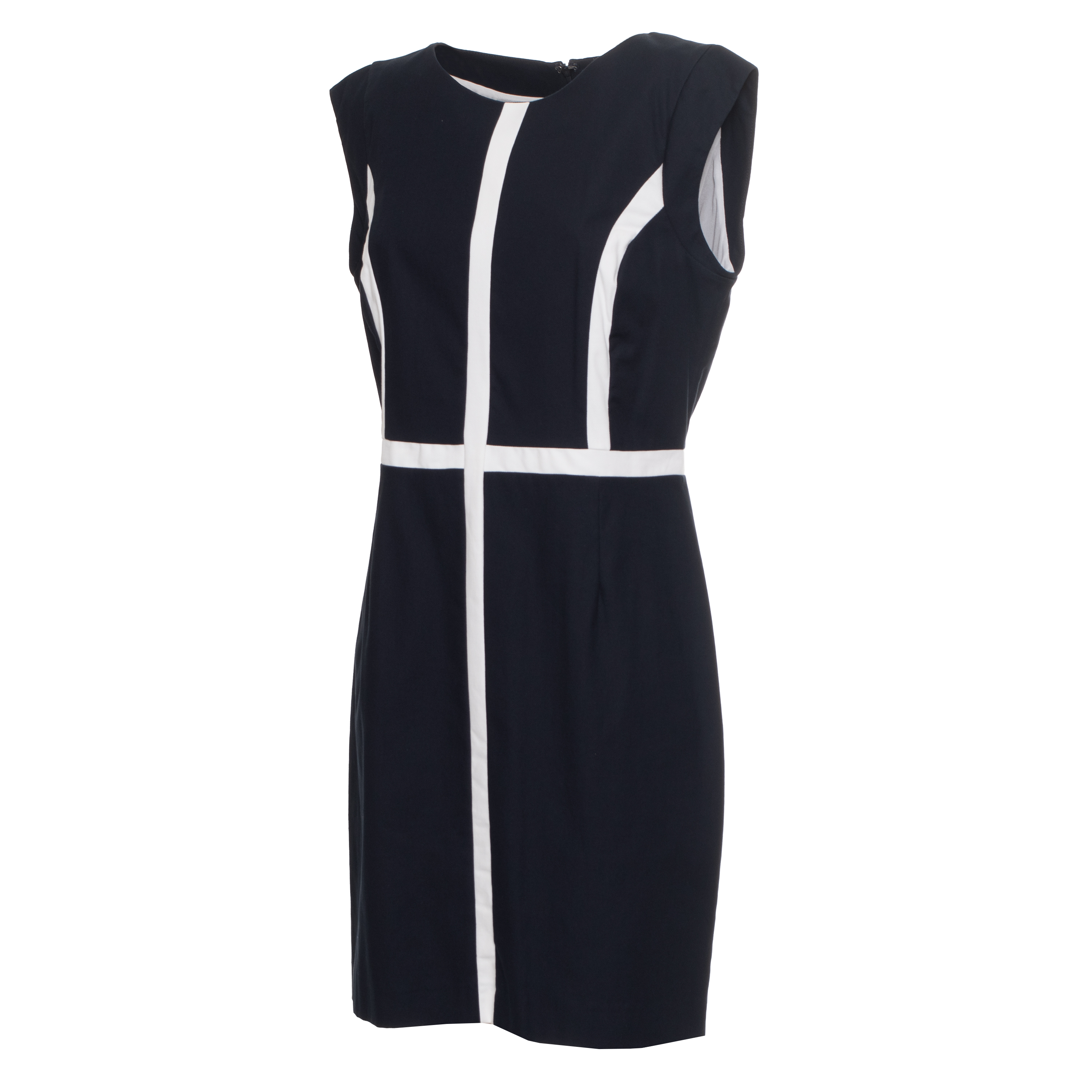 DRESS, FOR WOMEN, ROUND NECK, ARMHOLES, BI-COLOR, ZIP CLOSURE