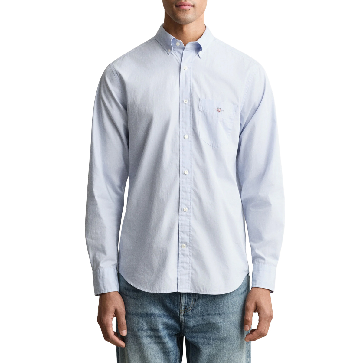 SHIRT, FOR MEN, WITH POCKET, BUTTON DOWN, REGULAR FIT, LONG SLEEVES, SOLID COLOUR, EMBROIDERED LOGO, BUTTONS CLOSURE