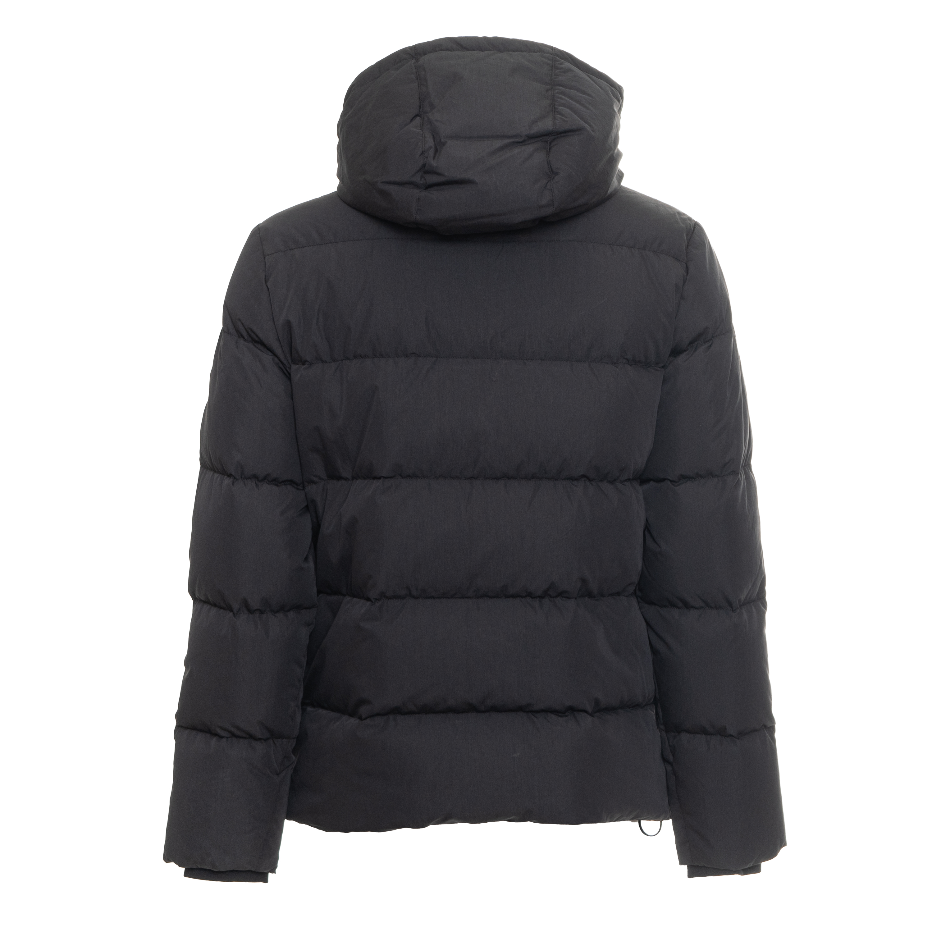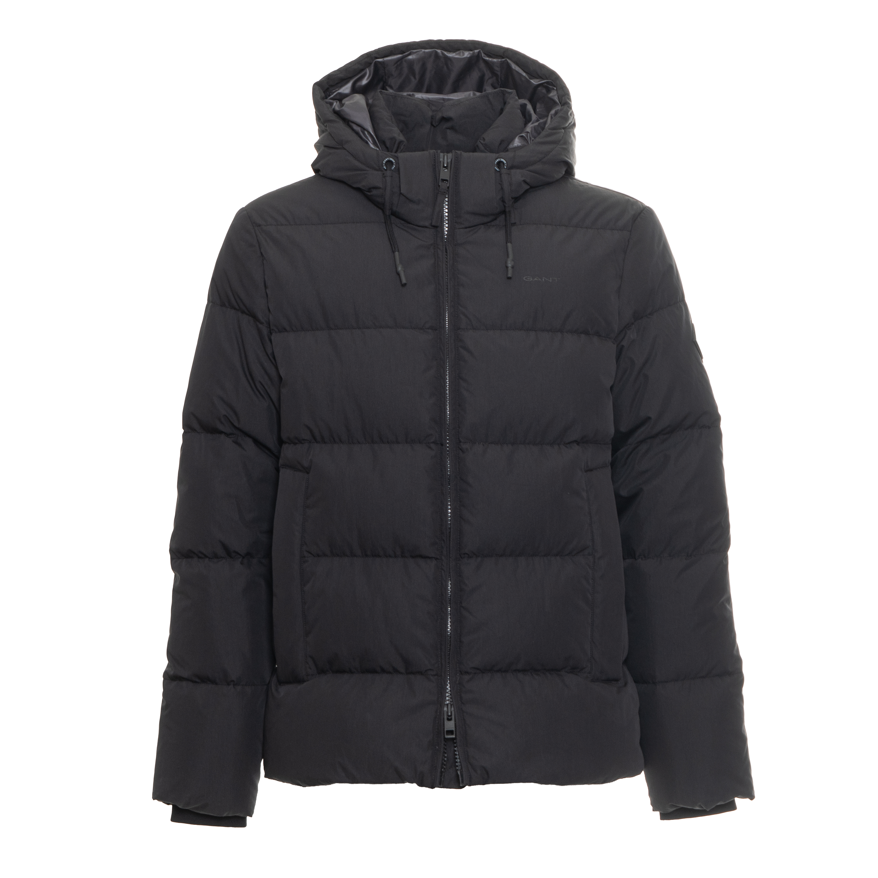 DOWN JACKET, FOR MEN, POCKETS, WITH HOOD, LONG SLEEVES, SOLID COLOUR, WITH LOGO, ZIP CLOSURE