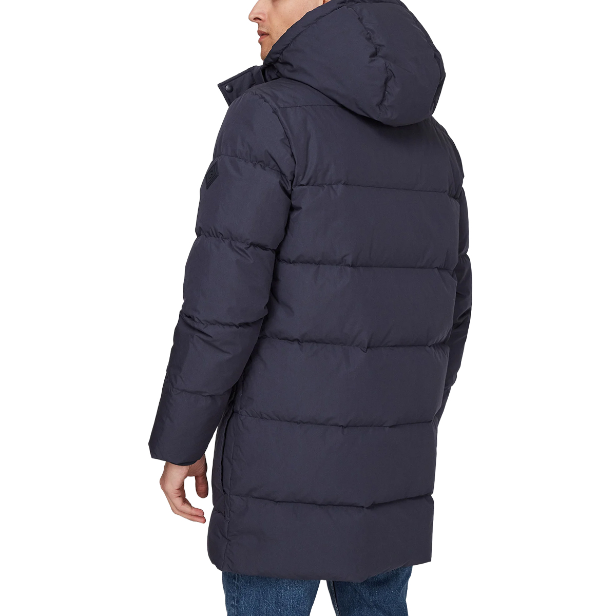 DOWN JACKET, FOR MEN, POCKETS, WITH HOOD, LONG DROP, LONG SLEEVES, SOLID COLOUR, WITH LOGO, BUTTON CLOSURE, ZIP CLOSURE