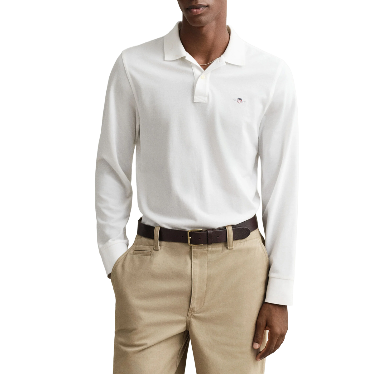 POLO SHIRT, FOR MEN, REGULAR FIT, LONG SLEEVES, SOLID COLOUR, WITH LOGO, WITH BUTTONS