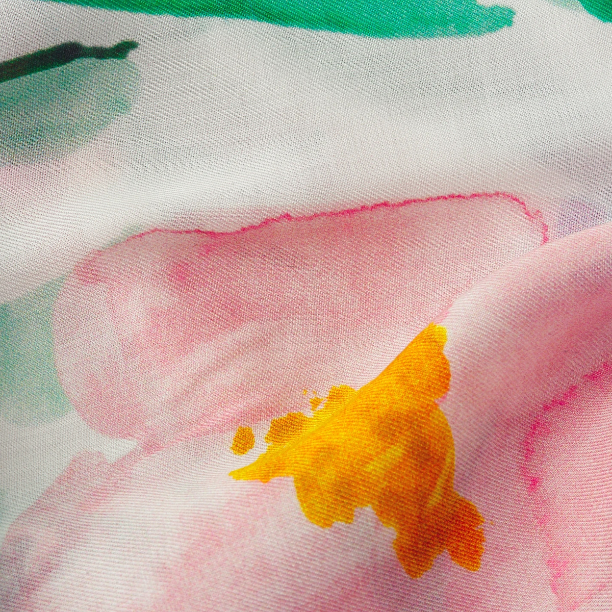 Tento šátek O2. GARDEN FLOWER SCARF od GANT je elegantním doplňkem s výrazným květinovým vzorem, který pokrývá celou plochu tkaniny. Detailní ztvárnění rostlinných motivů dodává výrobku hloubku a umělecký nádech vhodný pro prémiové butiky. Kvalitní zpracování a lehkost konstrukce umožňují různorodé způsoby vázání při zachování stálého tvaru.