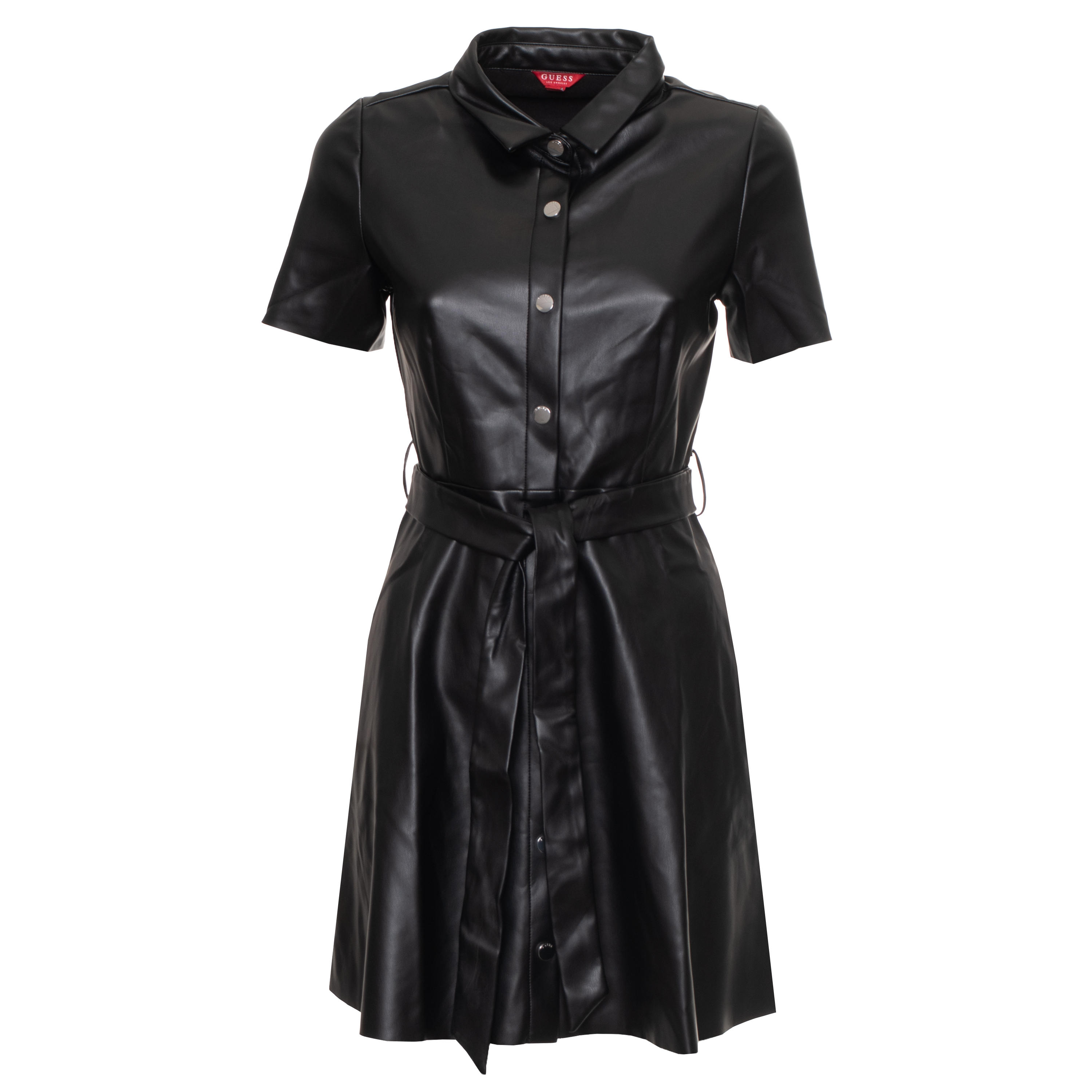 DRESS, FOR WOMEN, SHORT SLEEVES, SOLID COLOUR, WITH LOGO, BUTTON CLOSURE, WITH BELT