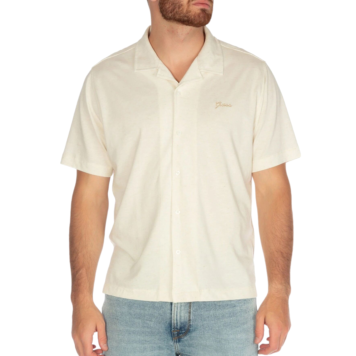 SHIRT, FOR MEN, BASIC COLLAR, REGULAR FIT, SHORT SLEEVES, BI-COLOR, WITH LOGO, BUTTONS CLOSURE