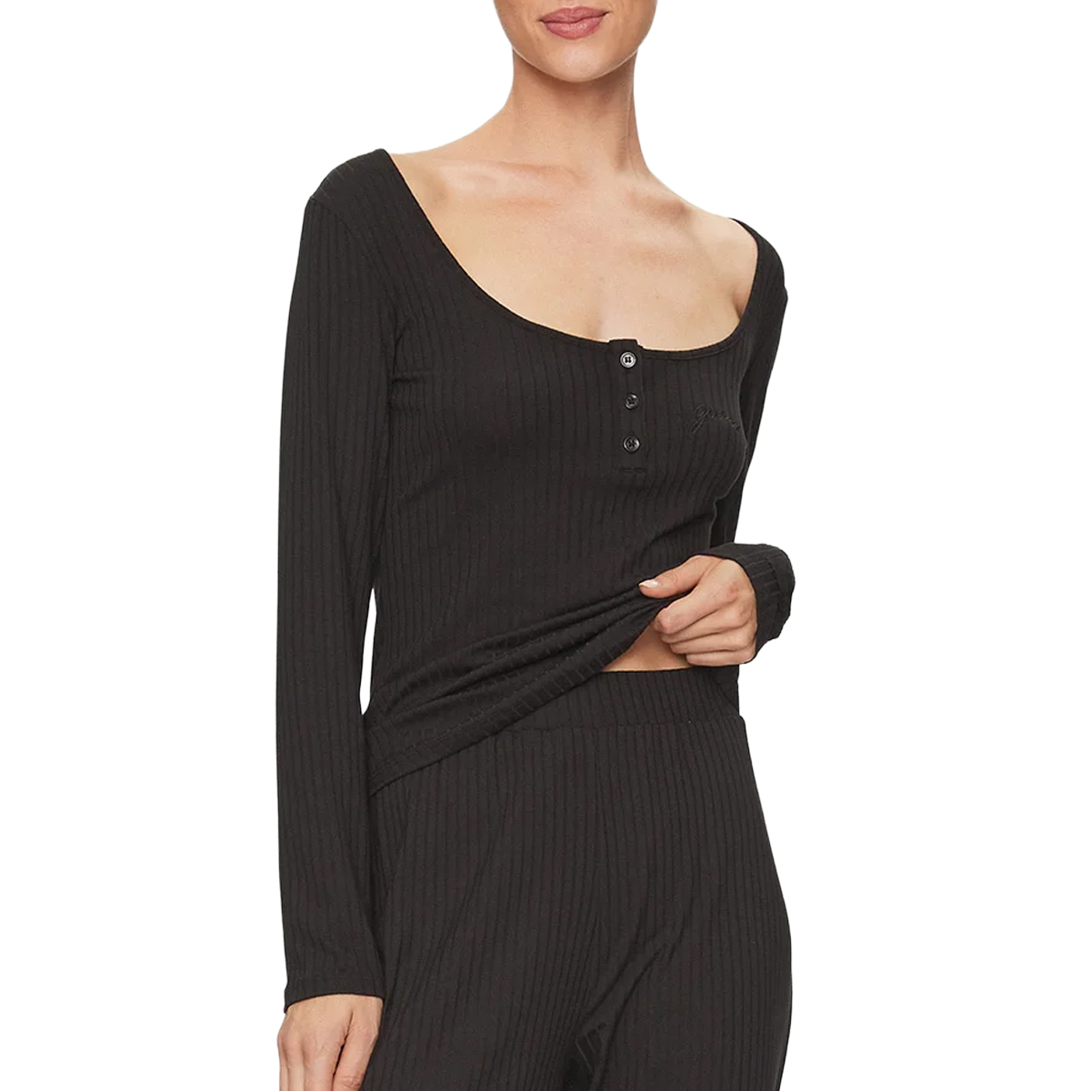 T-SHIRT, FOR WOMEN, ROUNDNECK, LONG SLEEVES, SOLID COLOUR, WITH LOGO