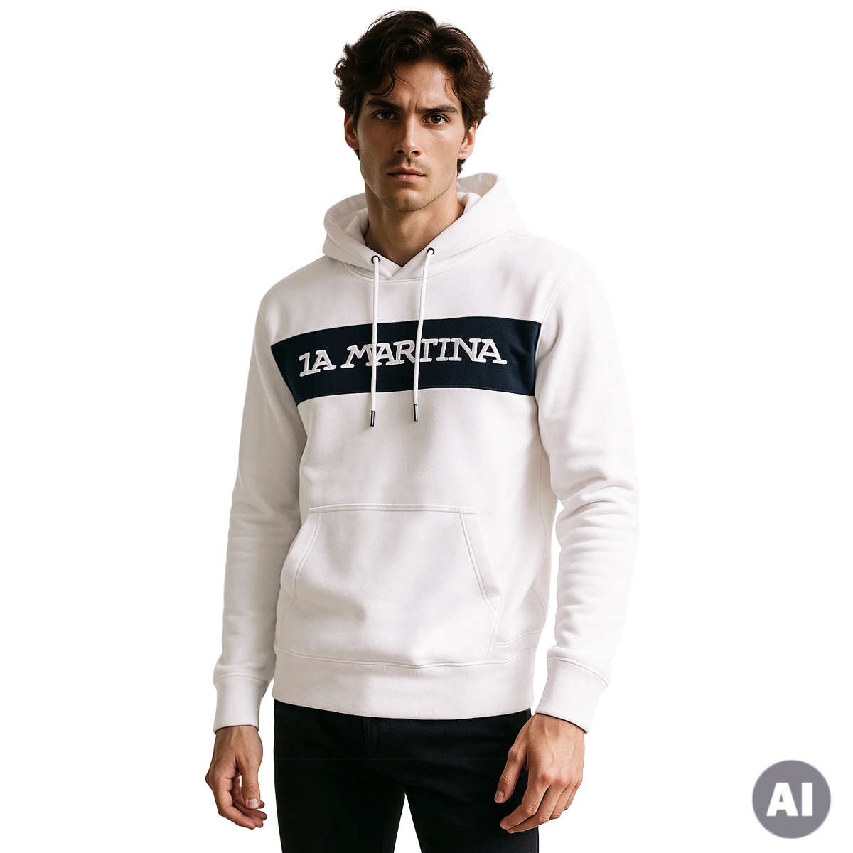 SWEATSHIRT, FOR MEN, LARGE POCKET, WITH HOOD, LONG SLEEVES, BI-COLOR, EMBROIDERED LOGO