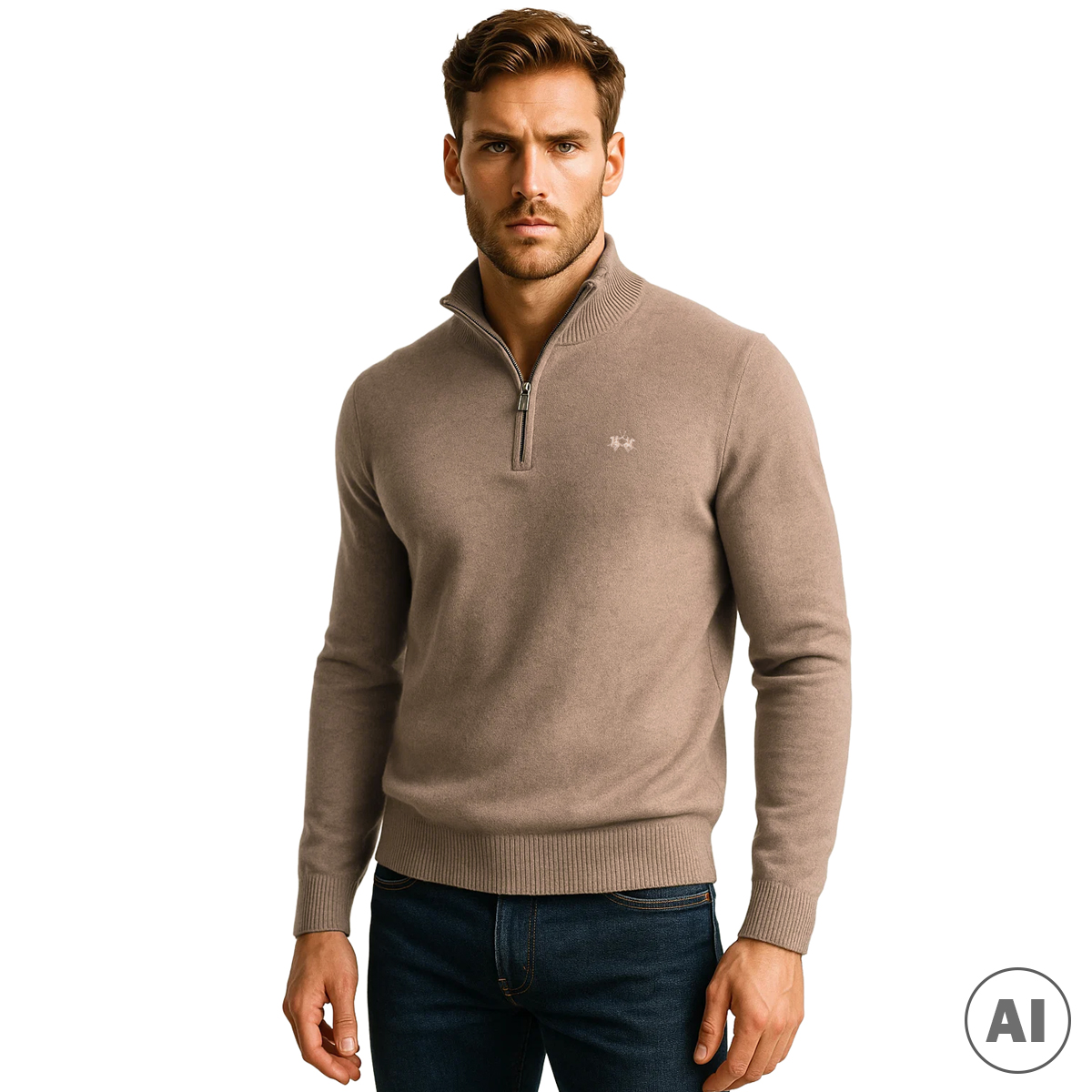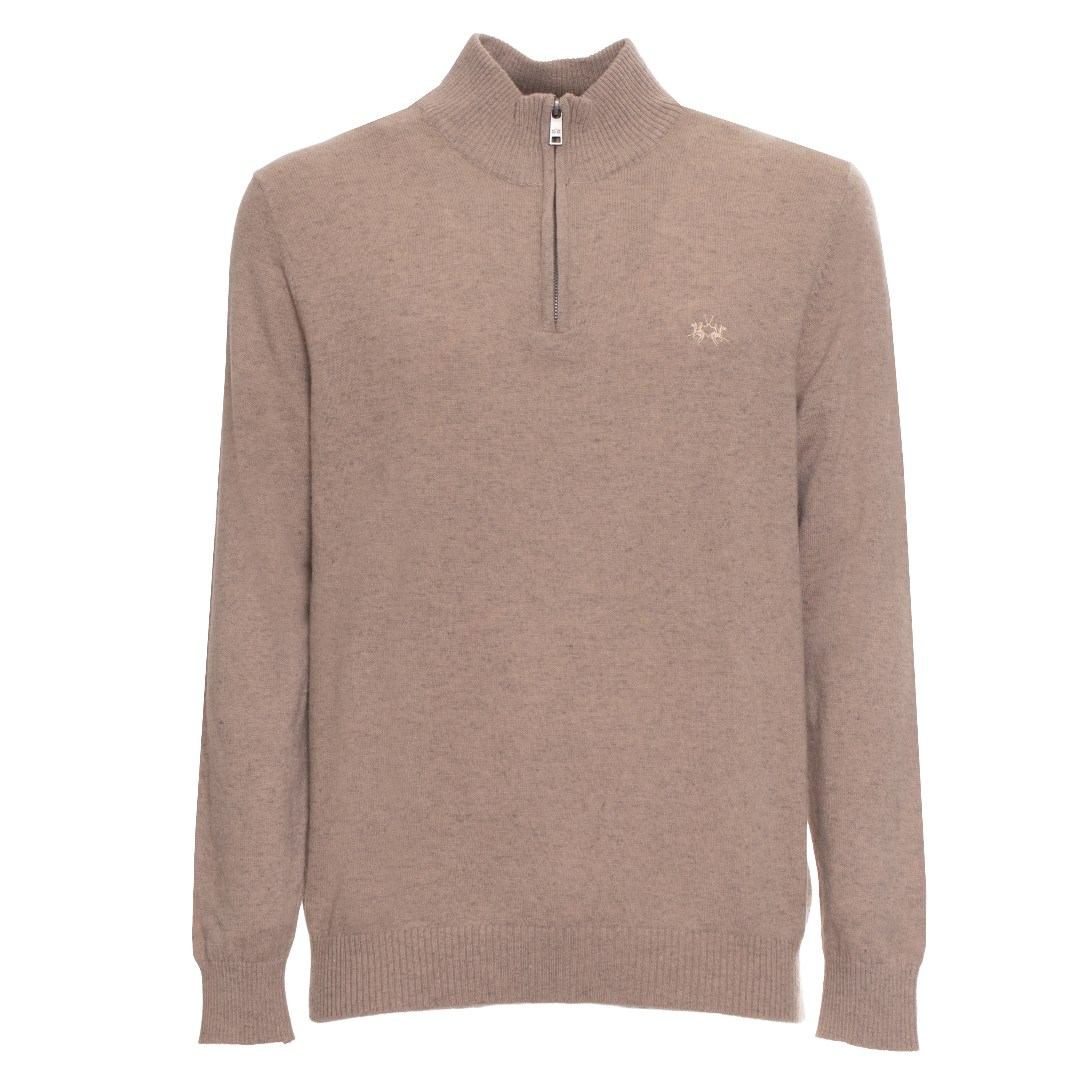 KNITWEAR, FOR MEN, LONG SLEEVES, SOLID COLOUR, WOOL, WITH LOGO, HALF ZIP