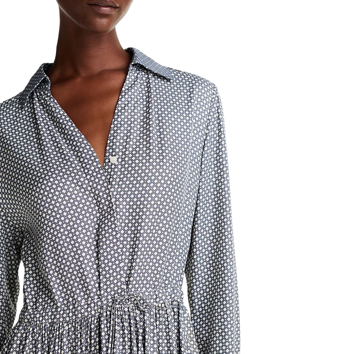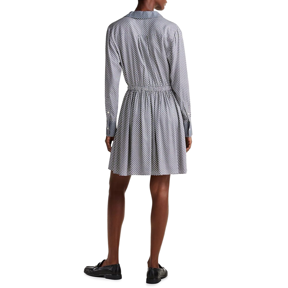 KNEE-LENGHT DRESS, FOR WOMEN, LONG SLEEVES, PATTERNED, BI-COLOR, WITH LOGO, BUTTON CLOSURE