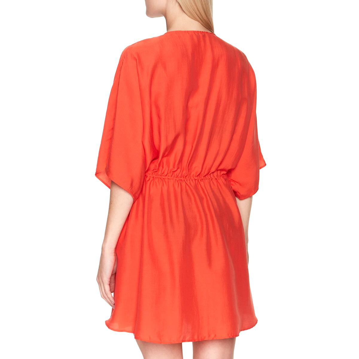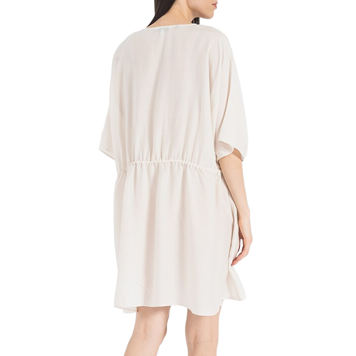 BEACH DRESS, FOR WOMEN, SHORT SLEEVES, SOLID COLOUR, DRAWSTRING WAIST, WITH LOGO