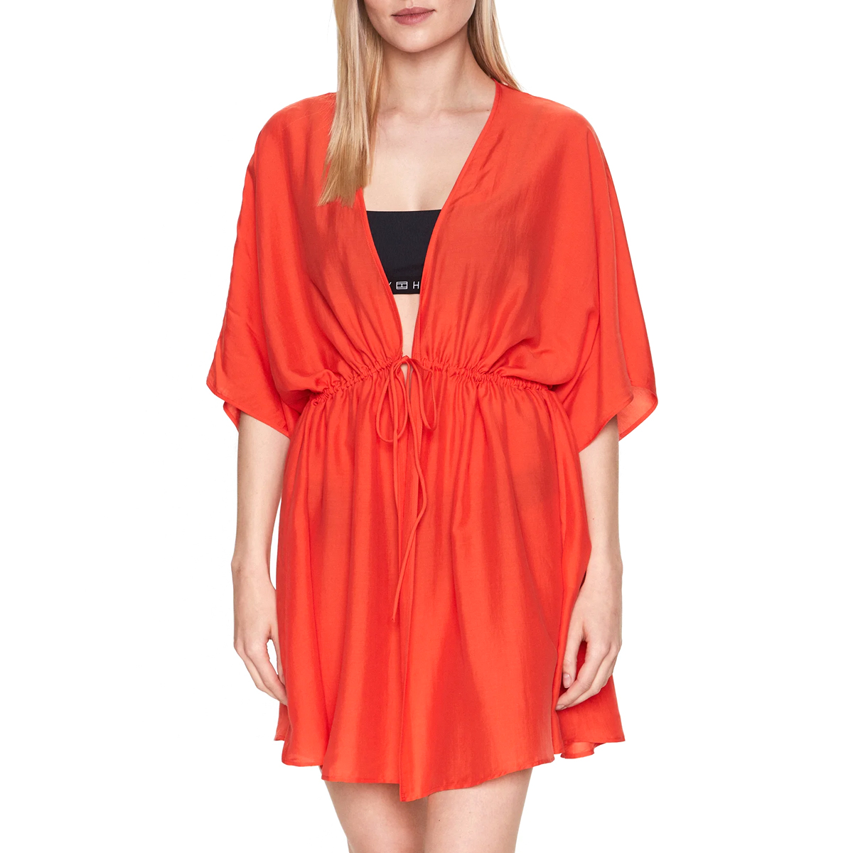 Tyto plavky COVER UP SHORT DRESS, AC0 od TOMMY HILFIGER jsou příkladem precizního designu s důrazem na volnost pohybu a čistotu tvarů. Šaty disponují praktickou stahovací šňůrkou v pase, která umožňuje regulovat šířku a dodává modelu ženský prvek v kombinaci s volně střiženými rukávy a hlubokým výstřihem.