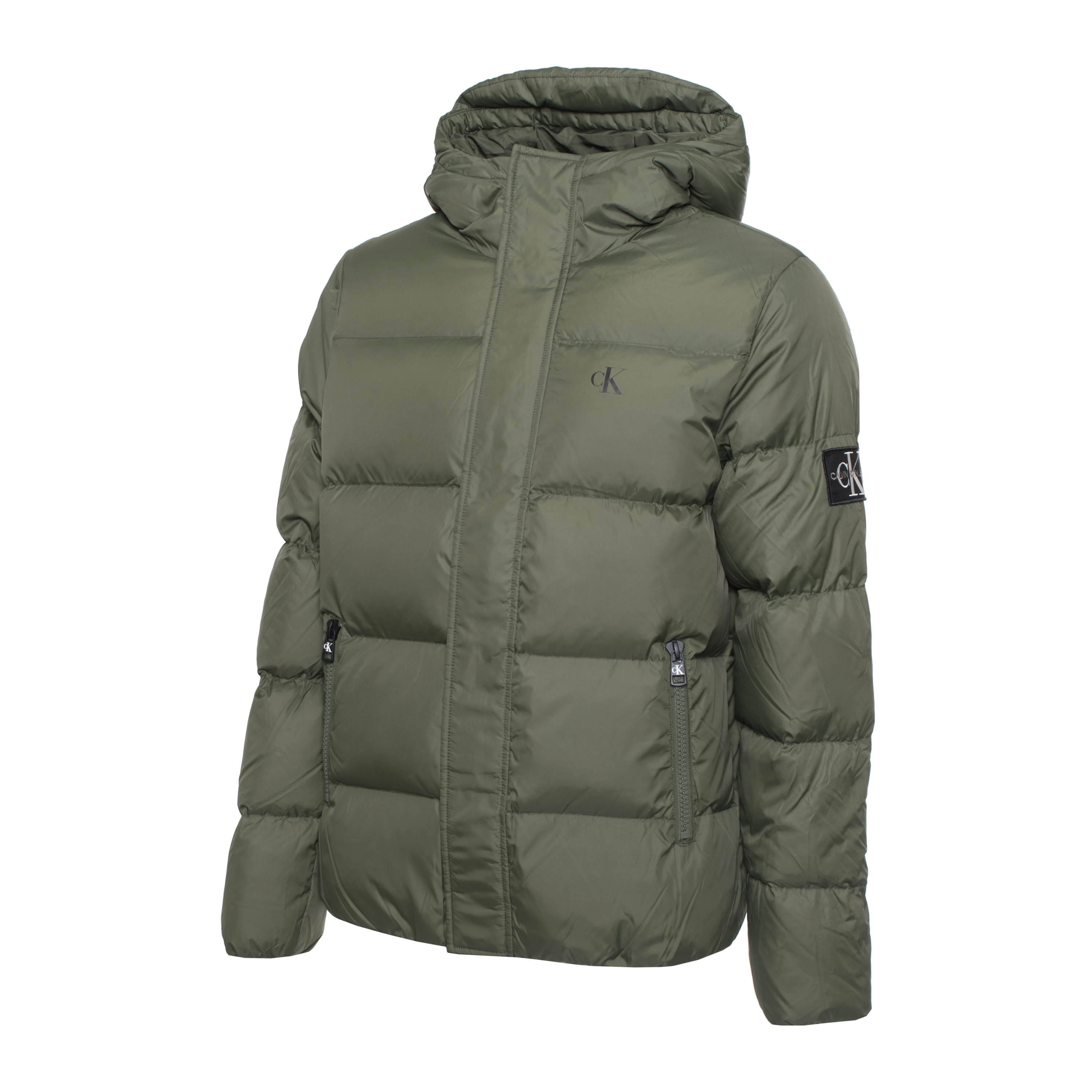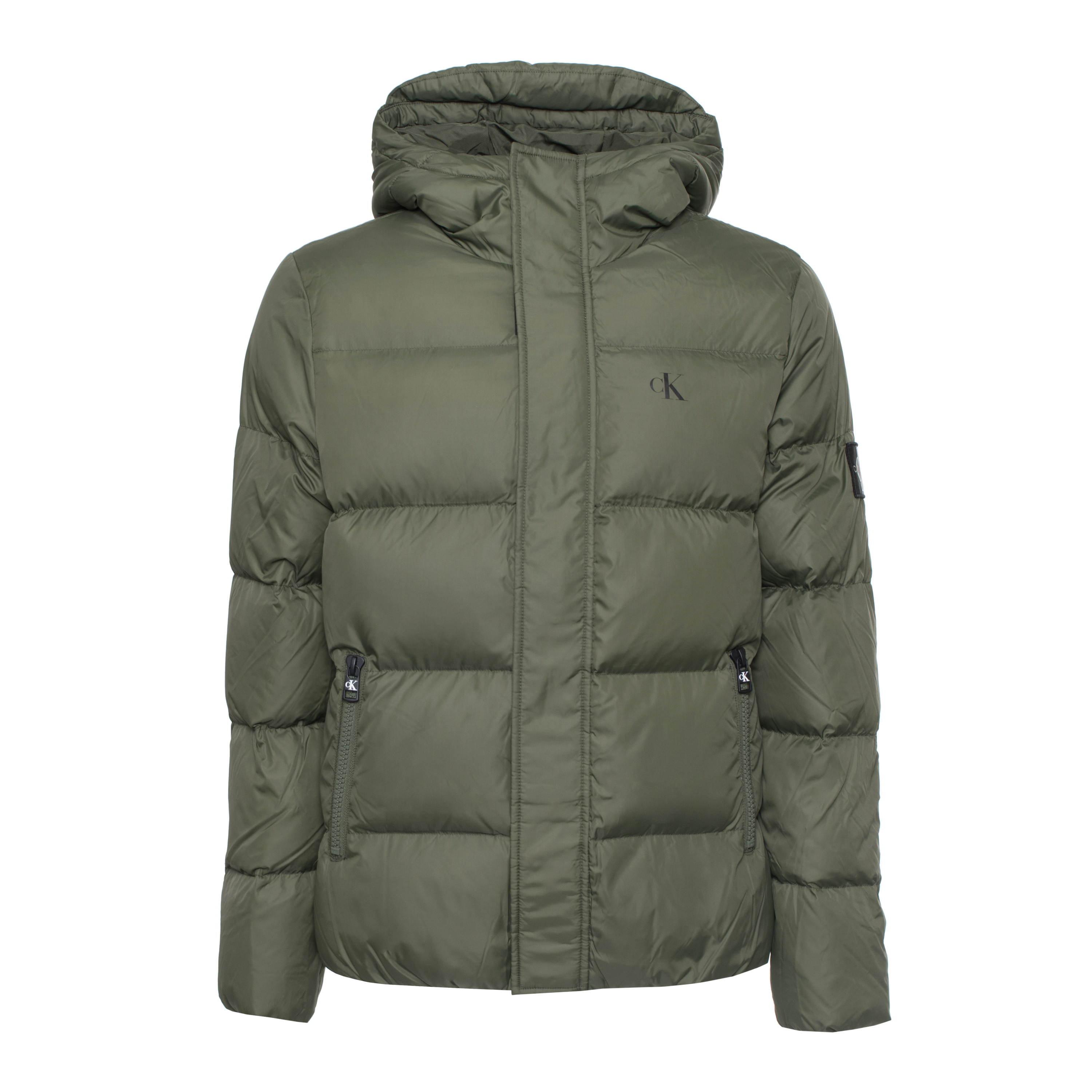 PADDED JACKET FOR MEN, ZIP CLOSURE, SOLID COLOUR, WITH HOOD, LONG SLEEVES