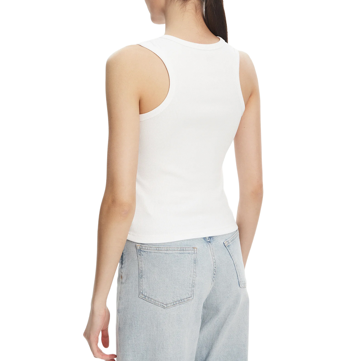 Dieses Top A - WOVEN LABEL 2X2, YAA von CALVIN KLEIN JEANS ist ein hochwertiges Essential mit einer markanten Rippstruktur. Der körpernahe Schnitt wird durch die feinen vertikalen Linien des 2x2-Gewebes betont, was dem Kleidungsstück eine besondere Tiefe und eine erstklassige Haptik verleiht.