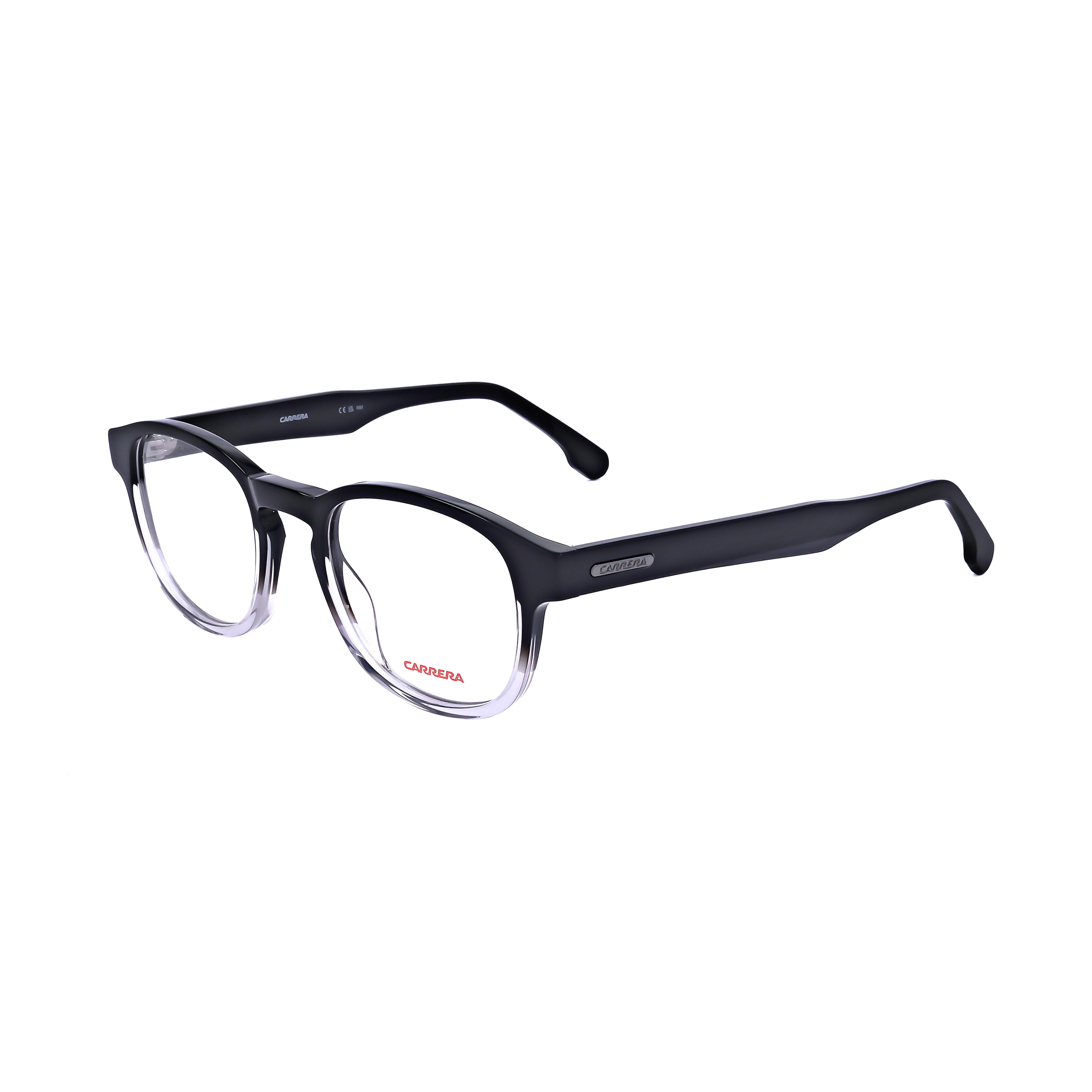 Diese CARRERA Brillenfassung zeichnet sich durch ihre präzise Fertigung und ein ansprechendes Design aus. Die runde Form wird durch eine markante obere Kante definiert, die sanft zur unteren, filigraneren Randpartie übergeht. Die geschwungenen Bügelenden unterstreichen die sorgfältige Gestaltung und den Tragekomfort dieses Accessoires.