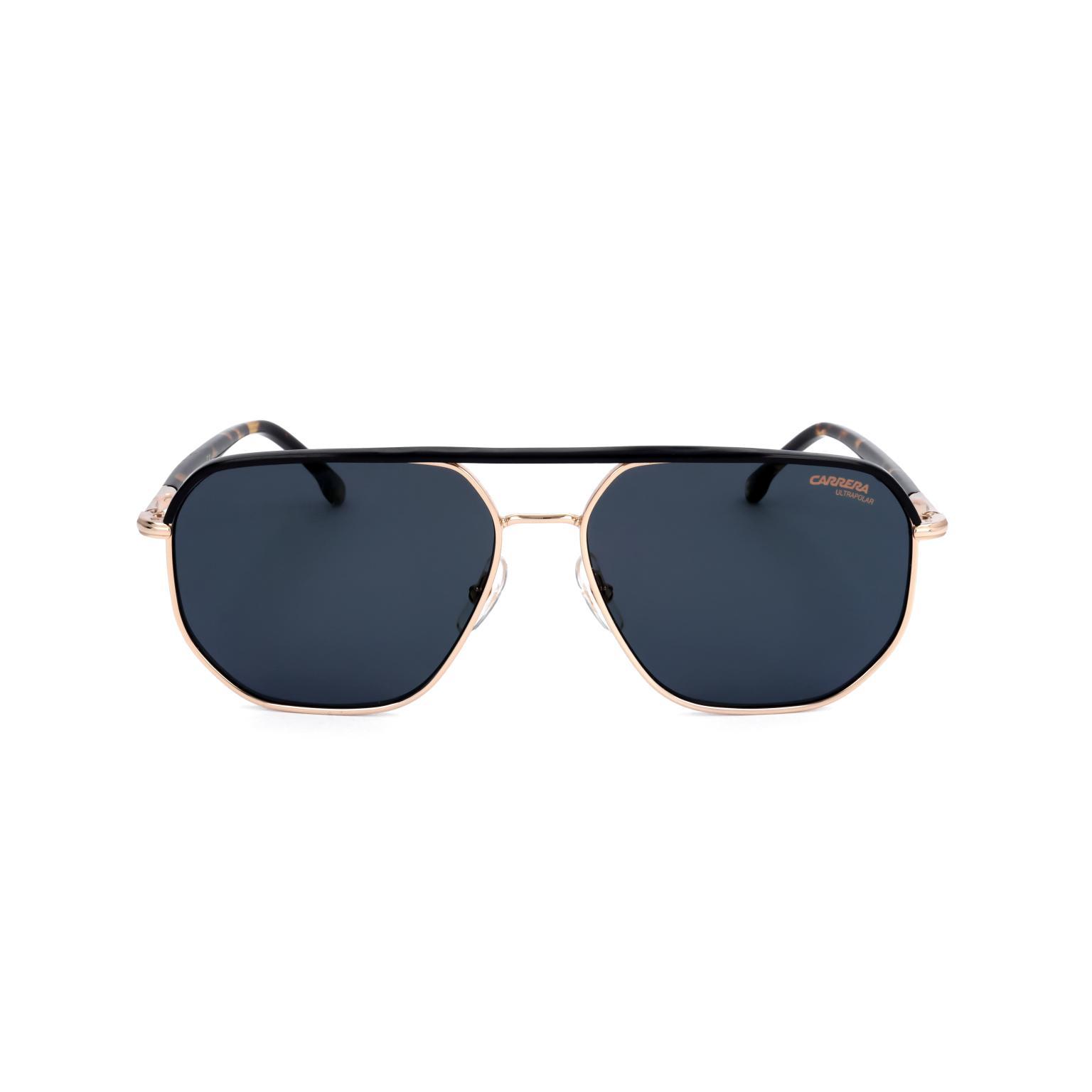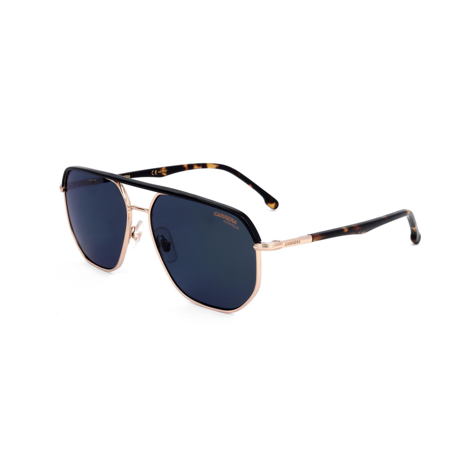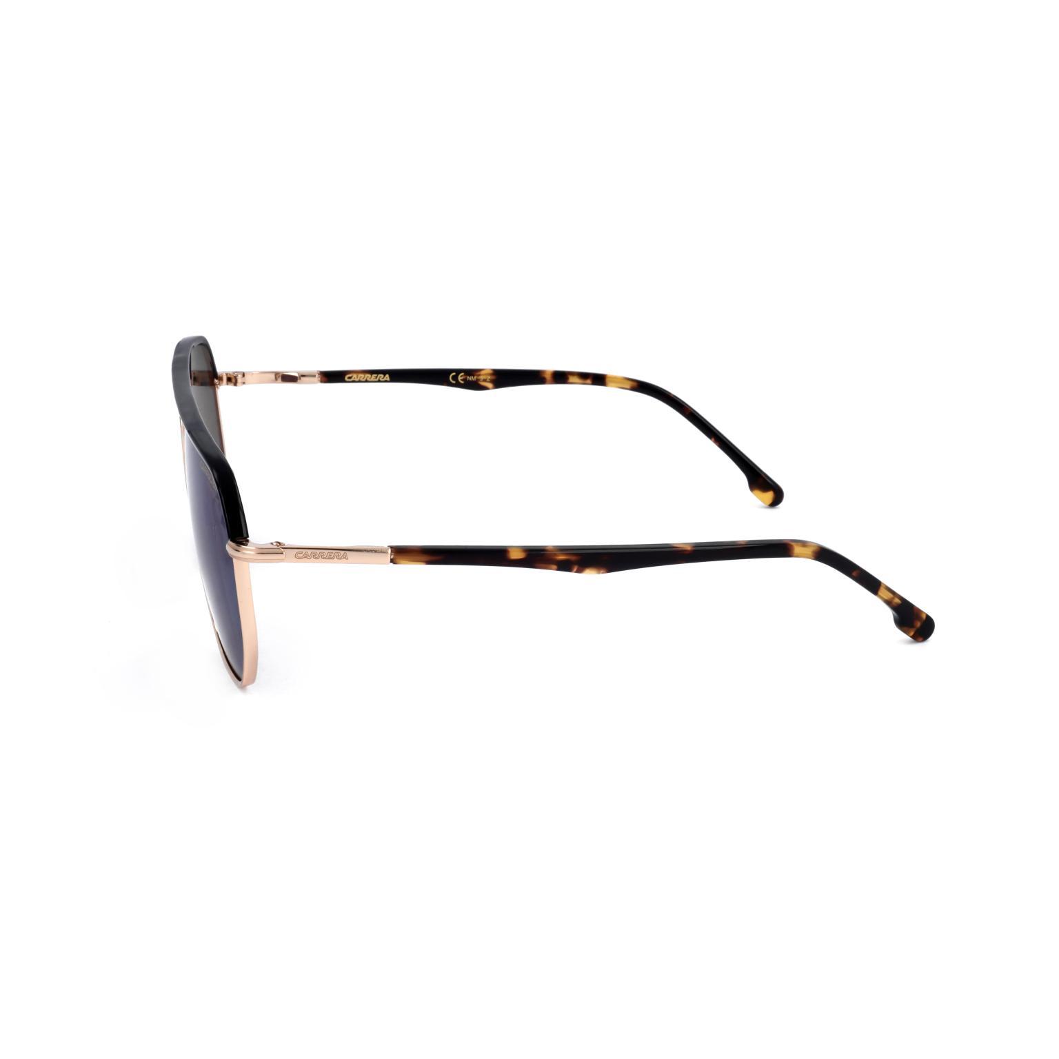 Diese Brillen von CARRERA präsentieren sich in einer markanten Pilotenform, die durch einen doppelten Steg eine dynamische Ästhetik erhält. Die Verlaufgläser bieten eine angenehme visuelle Erfahrung, während die Bügel mit ihrem oberen Schildpattmuster und den massiven Enden ein visuelles Gleichgewicht schaffen. Das Design ist sowohl robust als auch elegant.