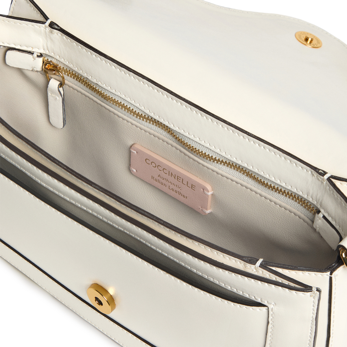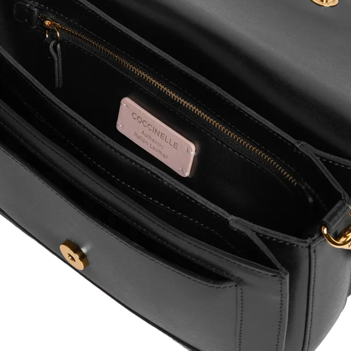 Diese COCCINELLE C-ME CALF Tasche von COCCINELLE besticht durch eine klare Linienführung und ein markantes Hardware-Detail an der Front. Die geschwungene Klappe und das kunstvoll verschlungene Logo-Element verleihen dem Modell eine besondere visuelle Tiefe. Durch die abnehmbaren Trageriemen lässt sich das Design mühelos an verschiedene Tragevarianten anpassen.