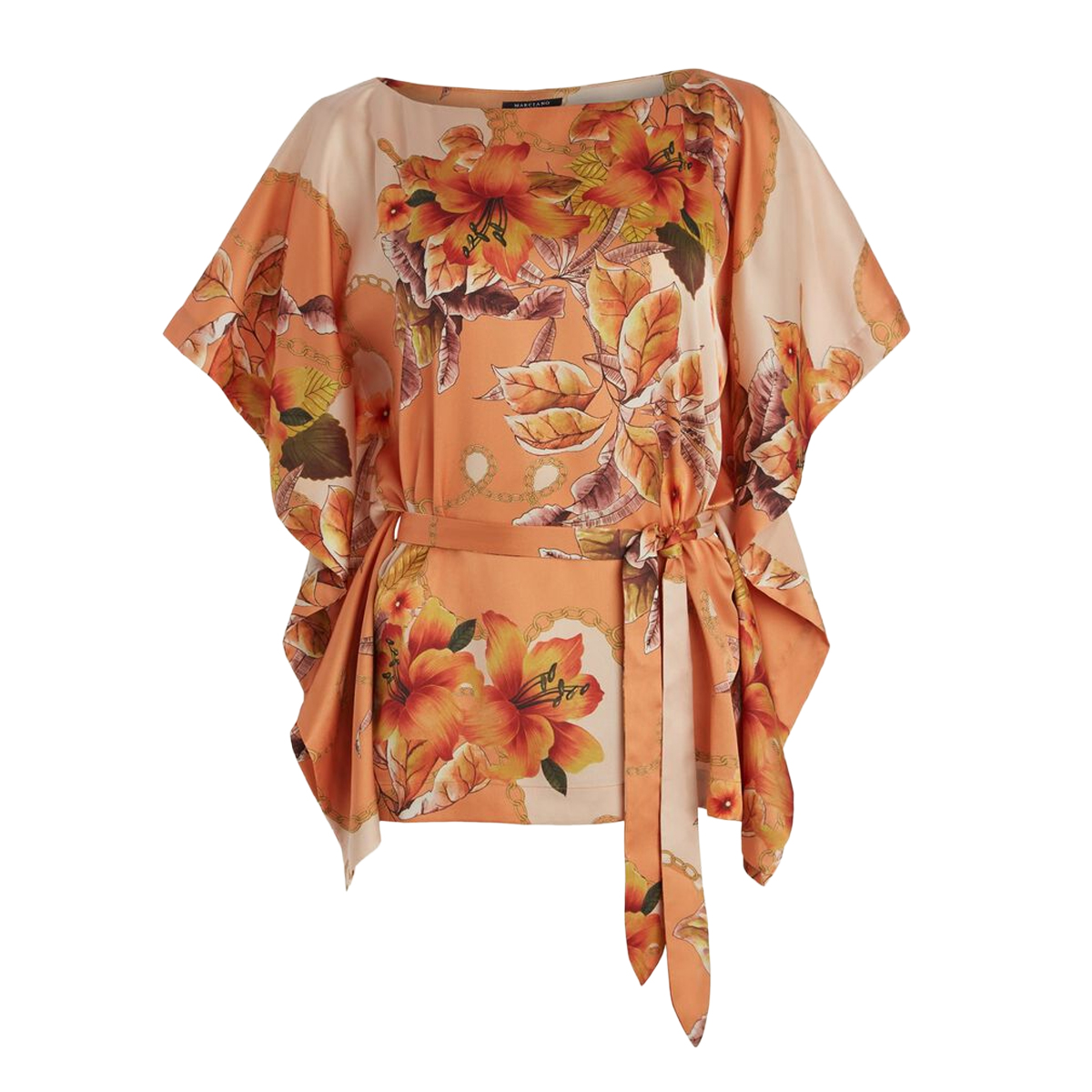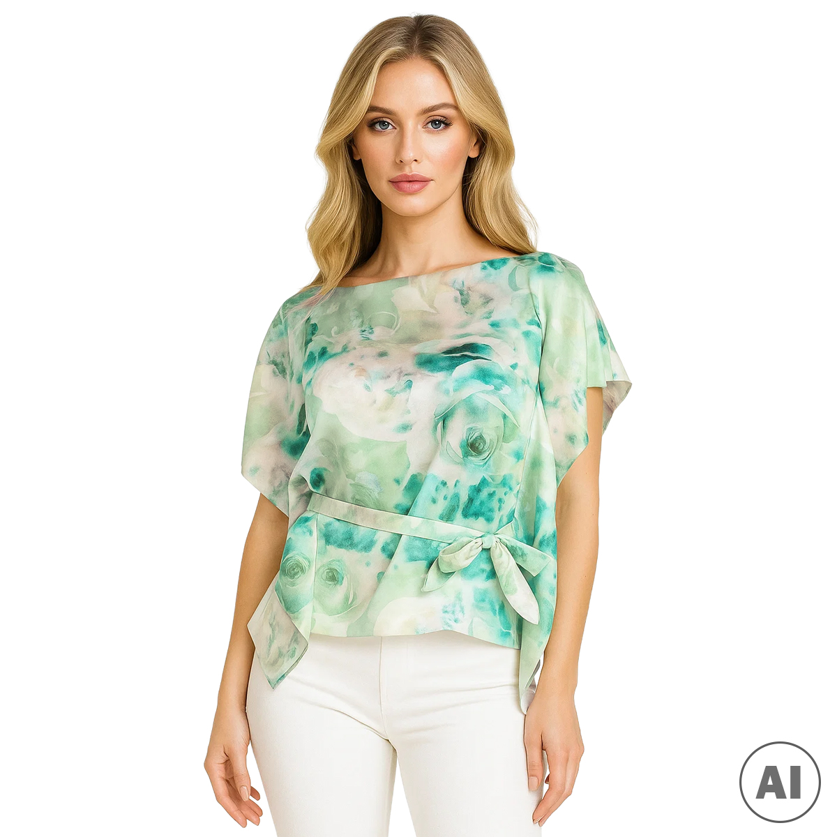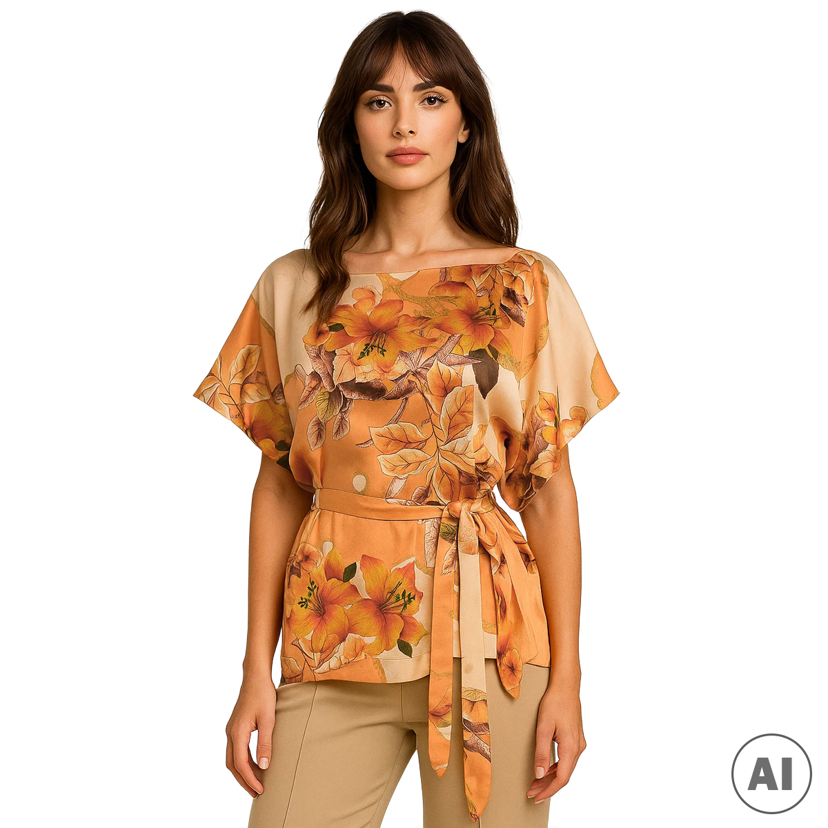 FÜR FRAUEN, KURZÄRMEL, BLUMEN-MUSTER, TUNNELZUG IM BUND, MIT LOGO