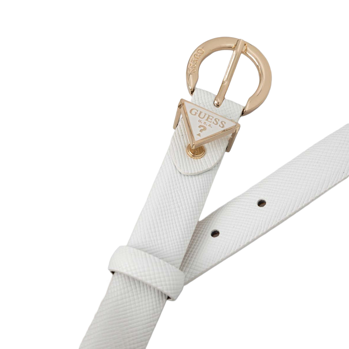 Dieser Gürtel NOELLE ADJ PANT BELT H25 von GUESS ist ein Beispiel für formale Klarheit und eine erstklassige Verarbeitung. Das Design besticht durch die runde Schließe und die metallische Logo-Applikation in Dreiecksform am Ende des Riemens. Die fein geprägte Oberflächenstruktur sorgt für eine griffige Haptik und ein gleichmäßiges Erscheinungsbild, das die Qualität der Konstruktion unterstreicht.