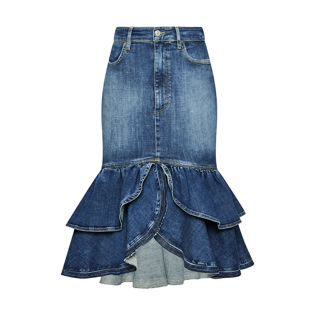 LONGUETTE-ROCK, FÜR FRAUEN, FESTFARBE, MIT LOGO