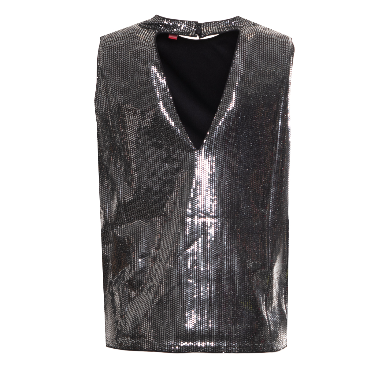 SINGLET, TOP, FÜR FRAUEN, V-AUSSCHNITT, FESTFARBE, MIT LOGO