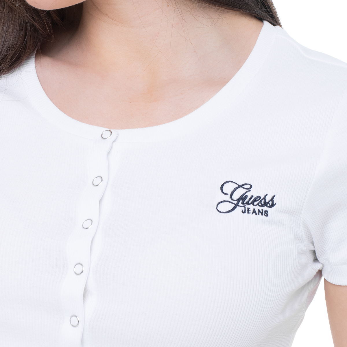 TOP, FÜR FRAUEN, RUNDE NECKEN, KURZÄRMEL, FESTFARBE, VERSCHLUSS MIT DRUCKKNÖPFEN, MIT LOGO