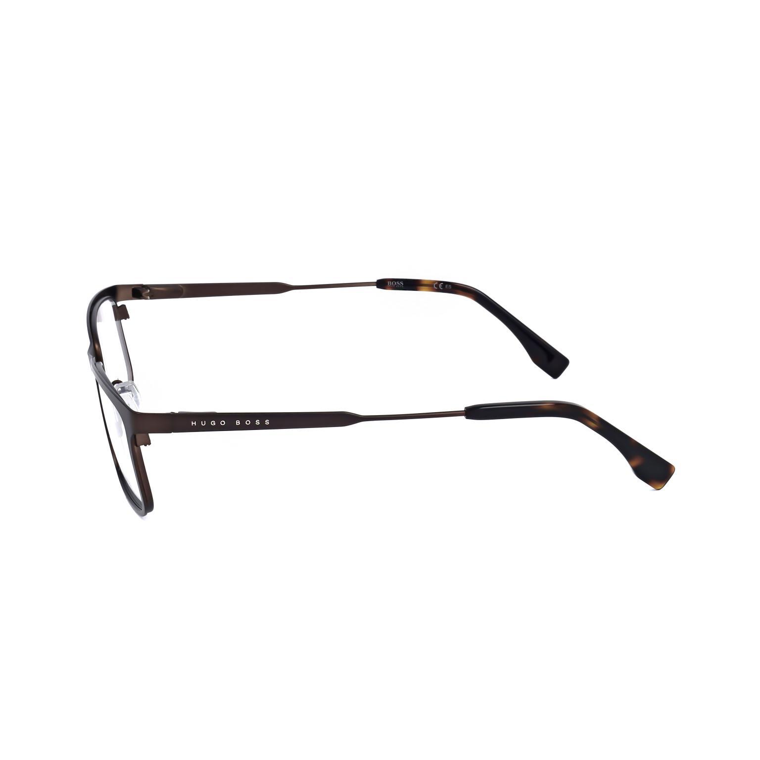Diese Brille von HUGO BOSS besticht durch eine rechteckige Rahmenform, die eine klare Formsprache spricht. Die präzise Verarbeitung zeigt sich in den schmalen Bügeln und dem 17 mm breiten Steg, die zusammen mit dem 53 mm Glasdurchmesser ein harmonisches Gesamtbild ergeben. Die dunklen Bügelenden bilden einen dezenten Abschluss zur metallischen Front.