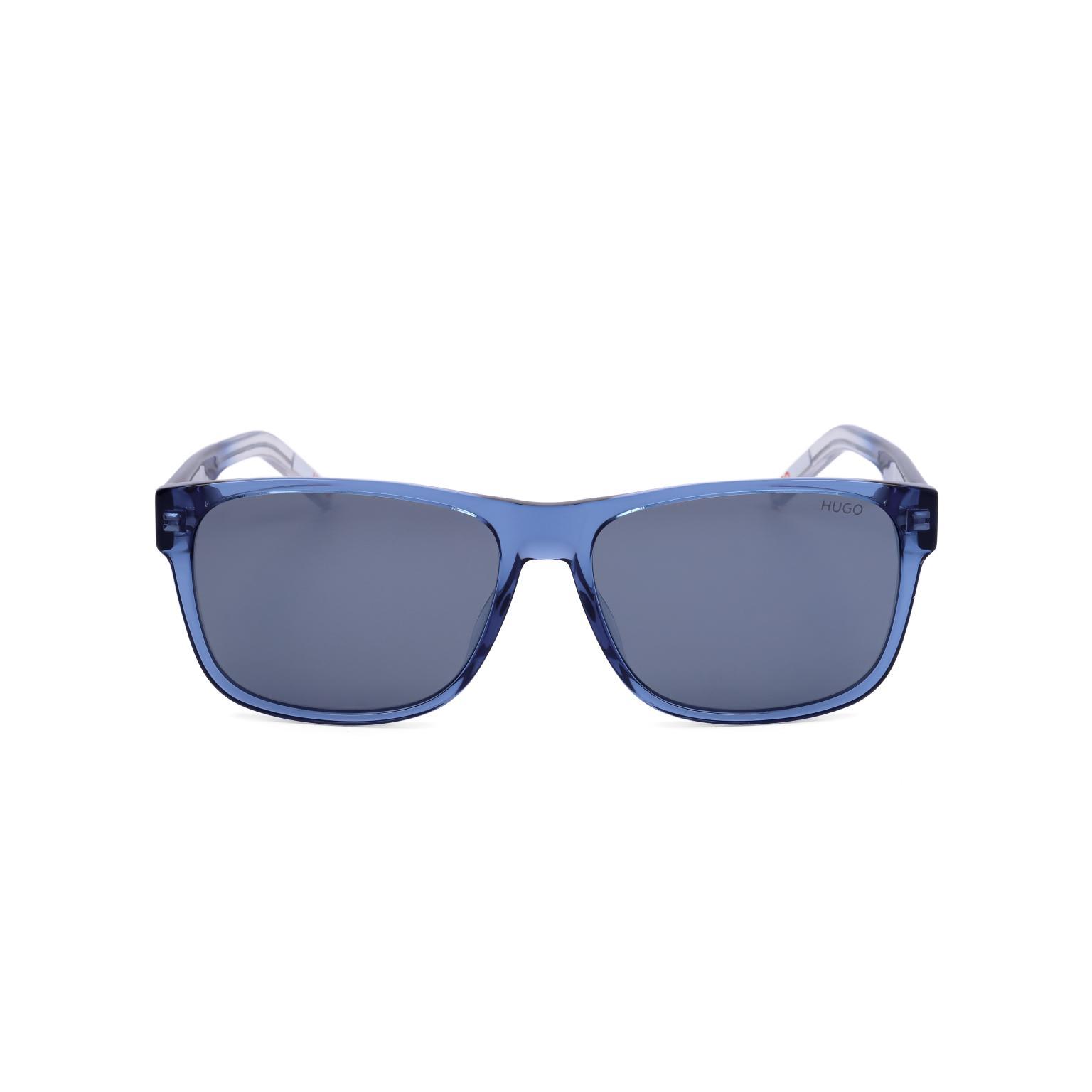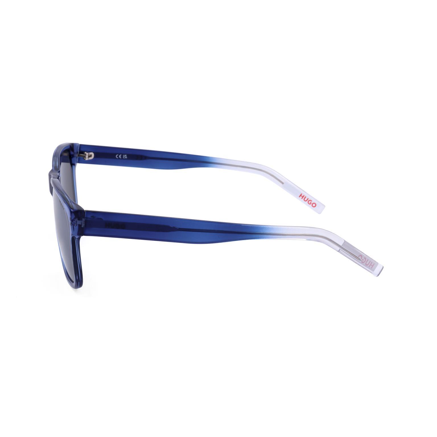 Diese HUGO occhiali präsentieren sich mit einem klaren, rechteckigen Rahmen, dessen transparente, glänzende Oberfläche eine moderne Ästhetik vermittelt. Die kräftige Frontpartie wird durch dunkle Gläser ergänzt, was ein ausgewogenes und anspruchsvolles Erscheinungsbild schafft, das Abnehmer anspricht.