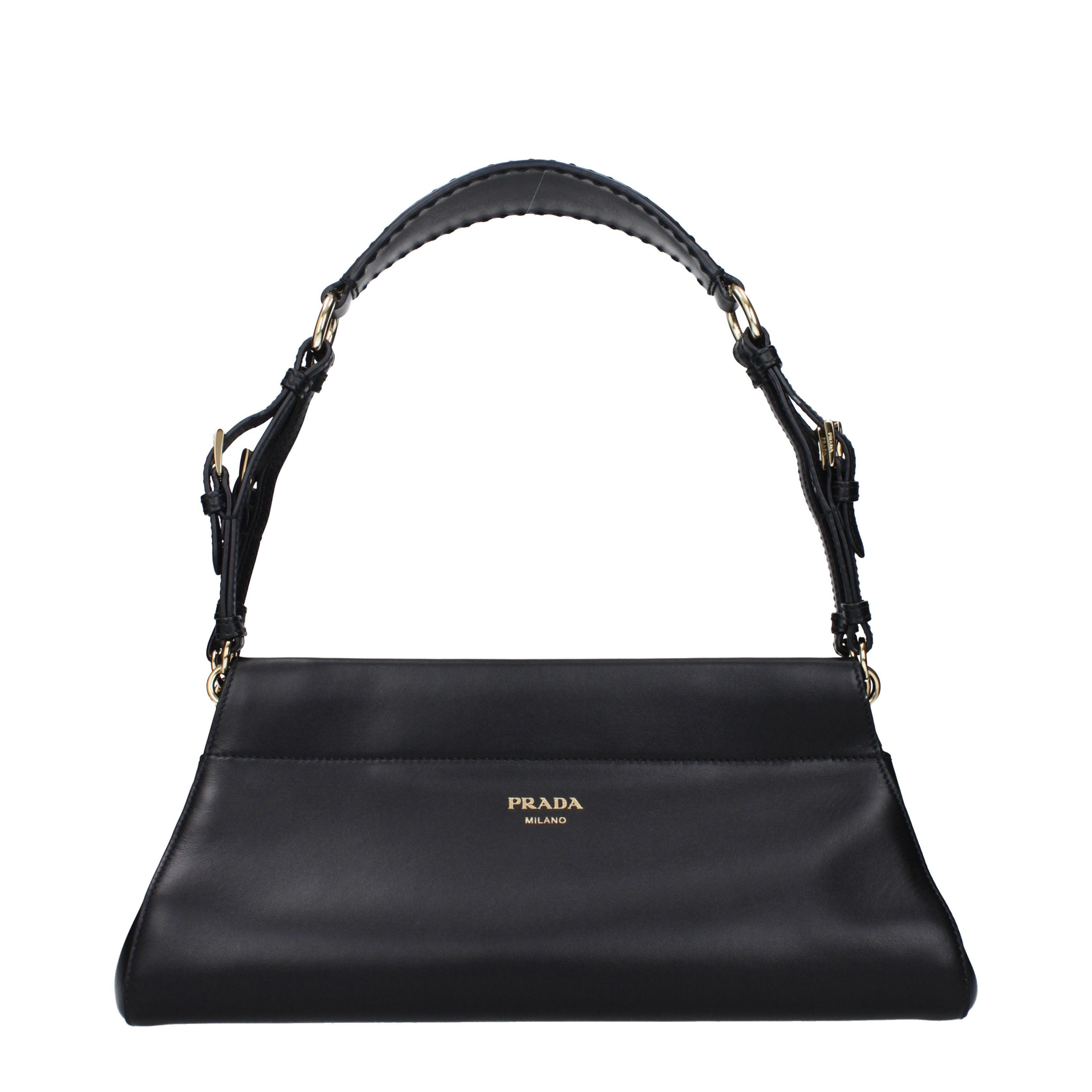Diese Schultertasche enchaîné von PRADA besticht durch ihre markante, flache Silhouette und die präzise Linienführung. Das Design wird durch einen breiten Schulterriemen mit markanten Beschlägen ergänzt, was der Tasche eine subtile technische Note verleiht, ohne die klassische Ästhetik zu stören.