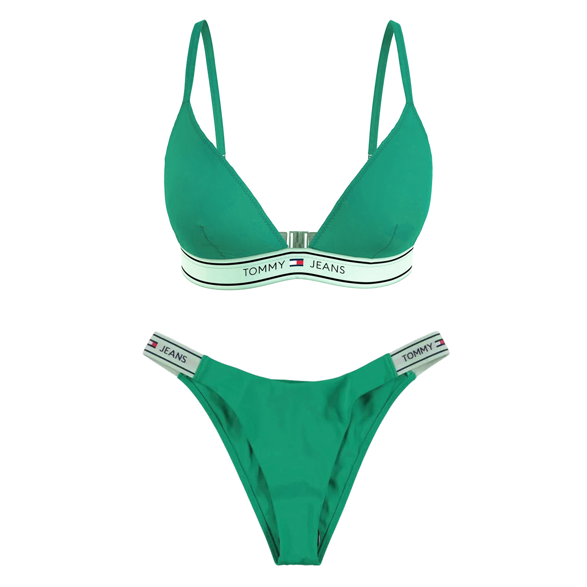 Dieser Bikini von TOMMY JEANS besticht durch eine markante Linienführung, die sportliche Funktionalität mit einem klaren Designkonzept verbindet. Das Triangel-Oberteil und das hoch geschnittene Unterteil verfügen über elastische Logobänder, die nicht nur für einen sicheren Sitz sorgen, sondern die architektonische Form des Modells betonen.