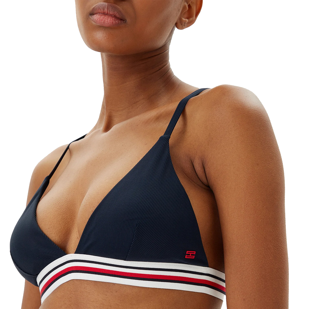 Dieser BIKINI von TOMMY HILFIGER besticht durch seine klare, sportliche Linienführung und eine erstklassige Verarbeitung. Das Triangel-Oberteil verfügt über ein breites, elastisches Unterbrustband mit den charakteristischen Streifen des Labels, das für eine sichere Passform sorgt. Eine dezente Rippstruktur verleiht dem einfarbigen Material eine hochwertige Haptik, während die schmalen Träger die Formgebung unterstreichen. Die passgenaue Hose mit niedrigem Bund rundet das funktionale Design harmonisch ab.
