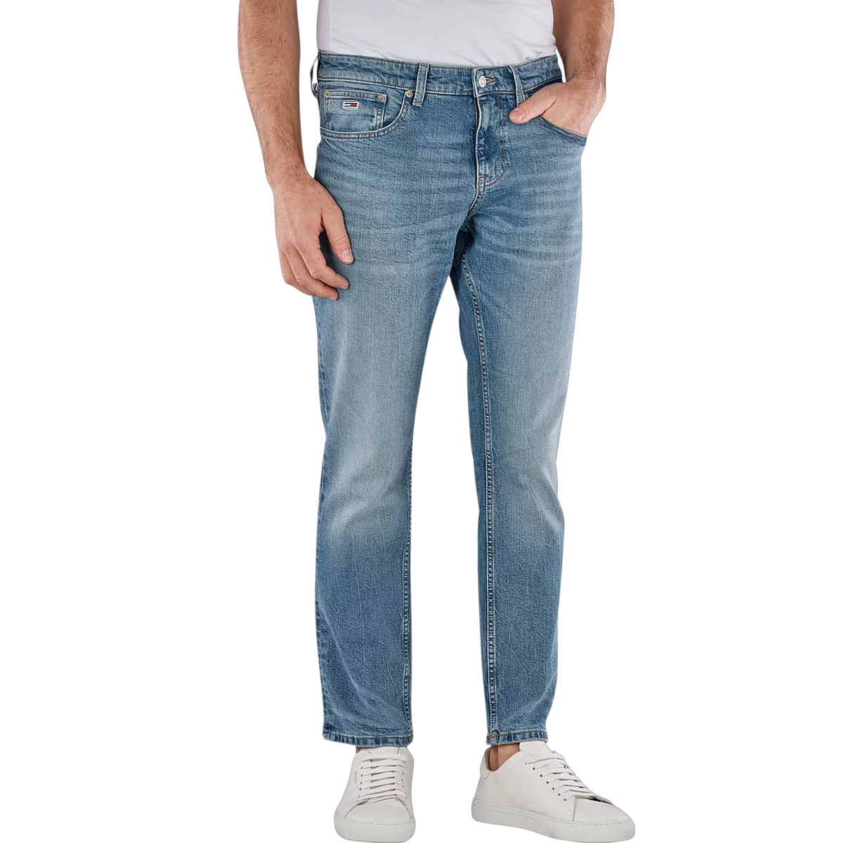 Diese Jeans SCANTON SLIM AI5117, 1AB von TOMMY JEANS präsentiert sich als vielseitiges Kleidungsstück mit einer klaren Linienführung und sorgfältig ausgeführten Details wie dem klassischen Five-Pocket-Design und dem Reißverschluss mit Knopf.Das Material setzt sich zusammen aus 50% regenerativer Baumwolle, welche umweltfreundliche Anbaumethoden fördert, und 20% recycelter Baumwolle zur Ressourcenschonung. Der geringe Elastan-Anteil von 1% verleiht dem Gewebe eine vorteilhafte Elastizität, die den Tragekomfort erhöht und die Formbeständigkeit langfristig sichert.