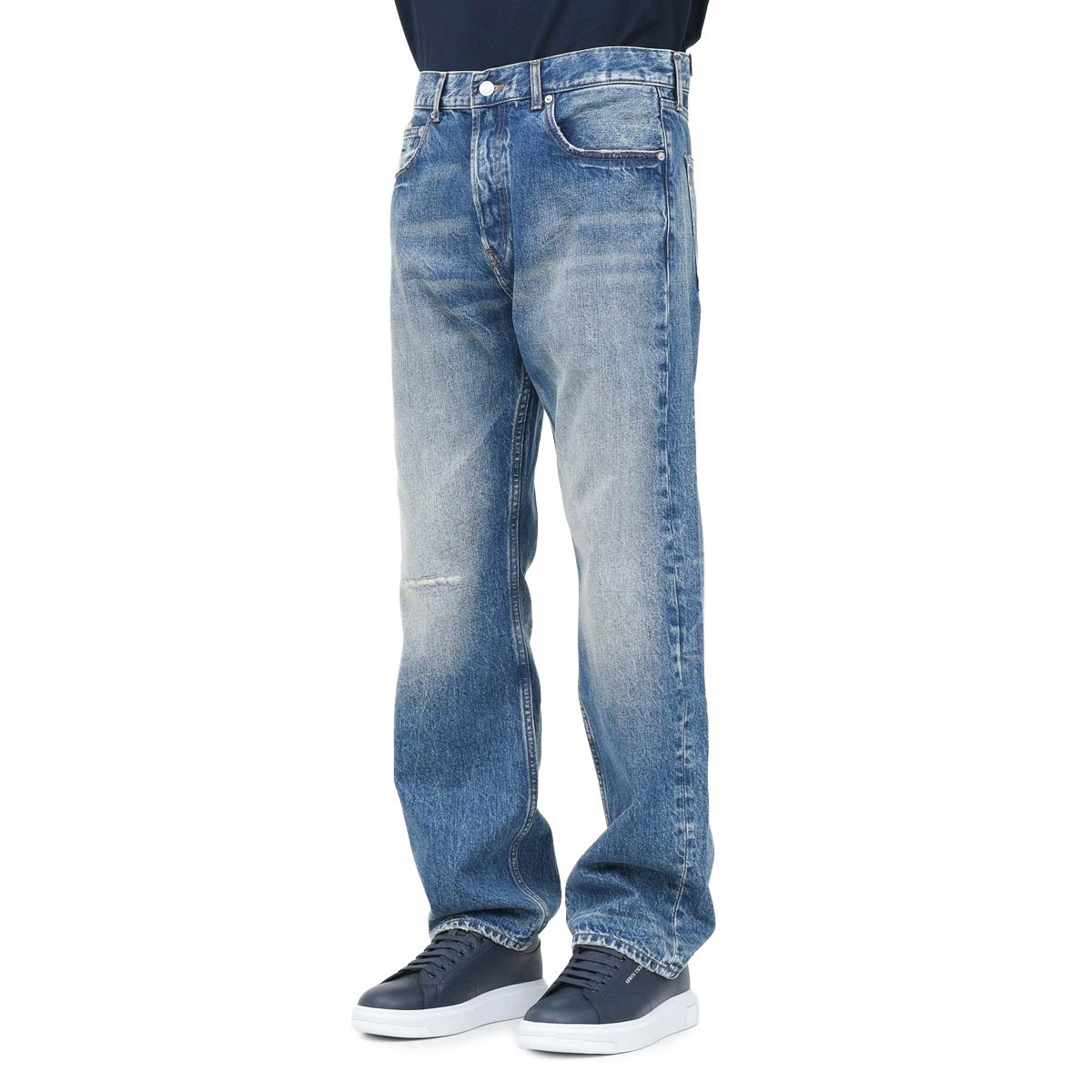 JEANS, FÜR MÄNNER, FÜNF TASCHEN, STRAIGHT FIT, FESTFARBE, MIT LOGO, REISSVERSCHLUSS UND KNOPFVERSCHLUSS
