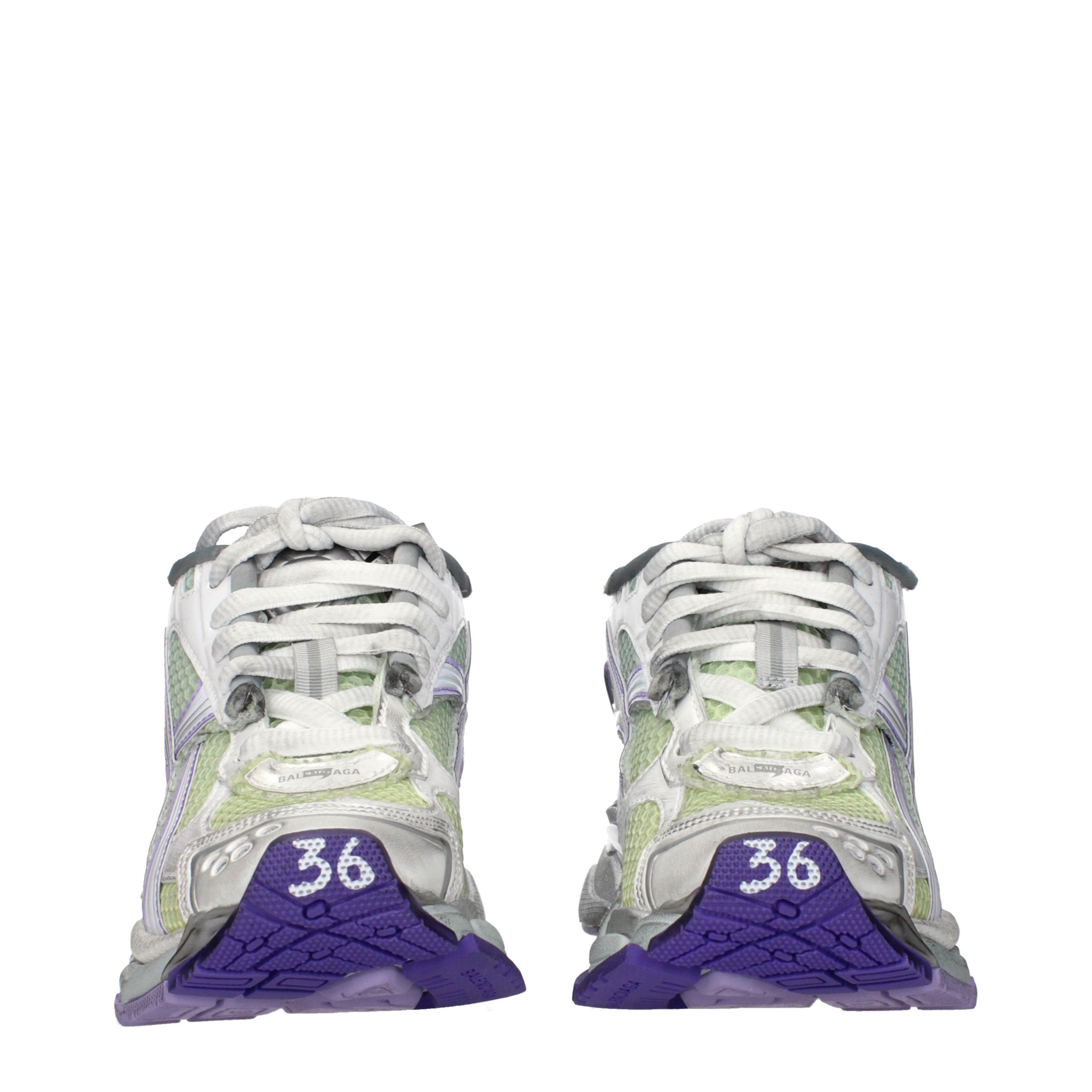 These Runner sneakers by Balenciaga are a masterclass in oversized proportions and intricate paneling. The silhouette is defined by an aggressive, multi-layered upper that showcases a variety of textures, from open mesh to synthetic overlays. Every element of the construction feels intentional, providing a sculptural quality to the footwear.