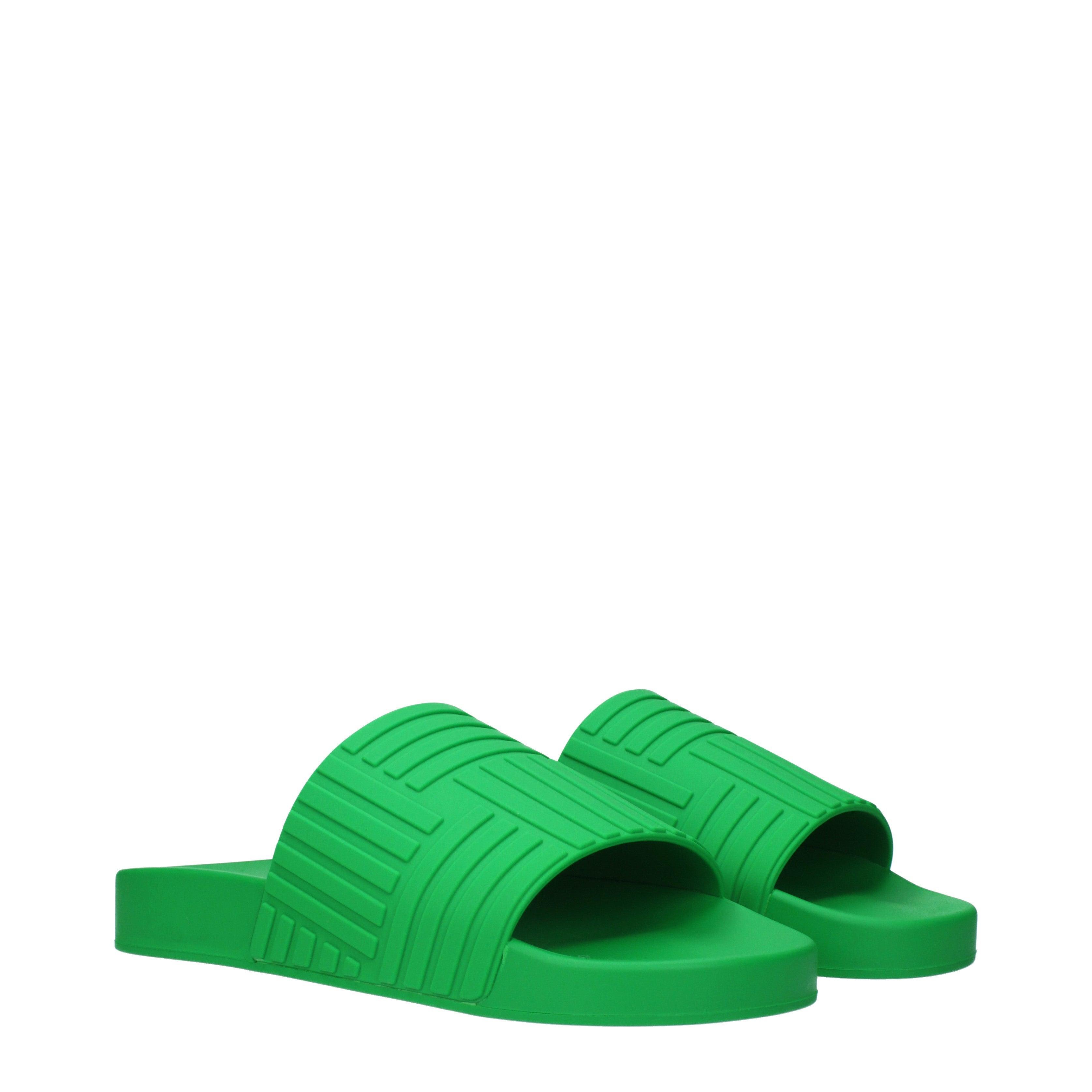 These BOTTEGA VENETA slides showcase a bold, monochromatic aesthetic defined by a wide, textured strap. The embossed geometric pattern across the upper creates a striking visual depth, echoing the house's signature craftsmanship in a modern, waterproof format. The chunky, flat profile provides a solid foundation with a sophisticated architectural presence.