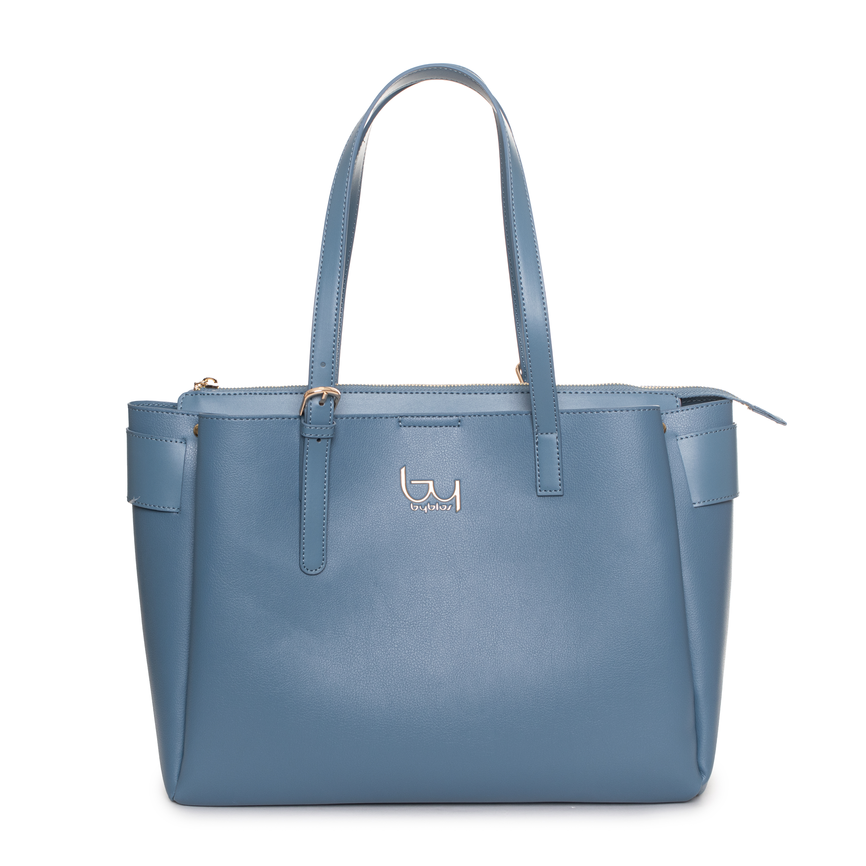 This shoulder bag Columba by Byblos is a structured accessory that emphasizes sharp lines and a wide, stable base. The twin handles are integrated seamlessly into the body, complemented by side buckle details that suggest a refined utility. Its trapezoidal profile offers a substantial internal volume without losing its sleek, professional edge.
