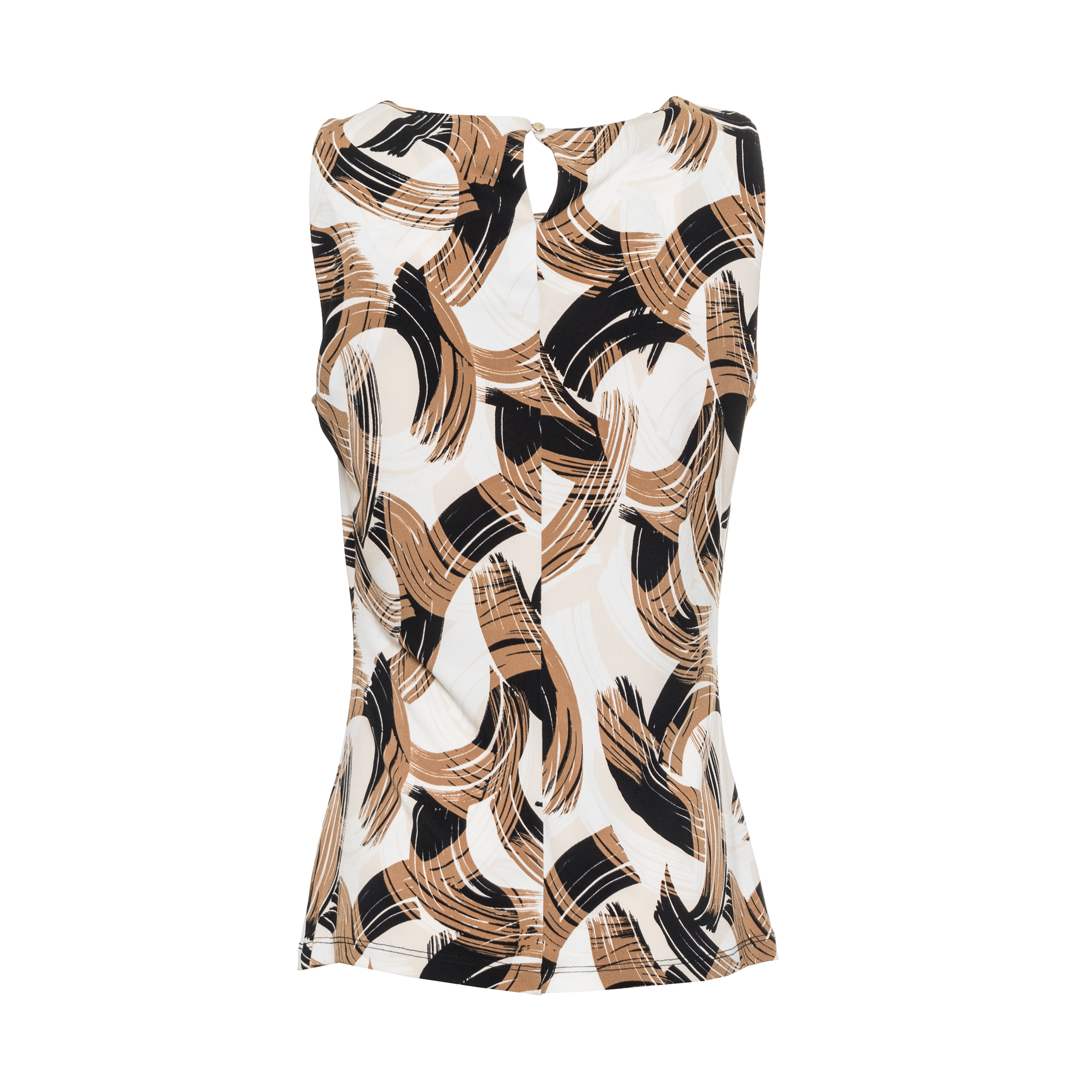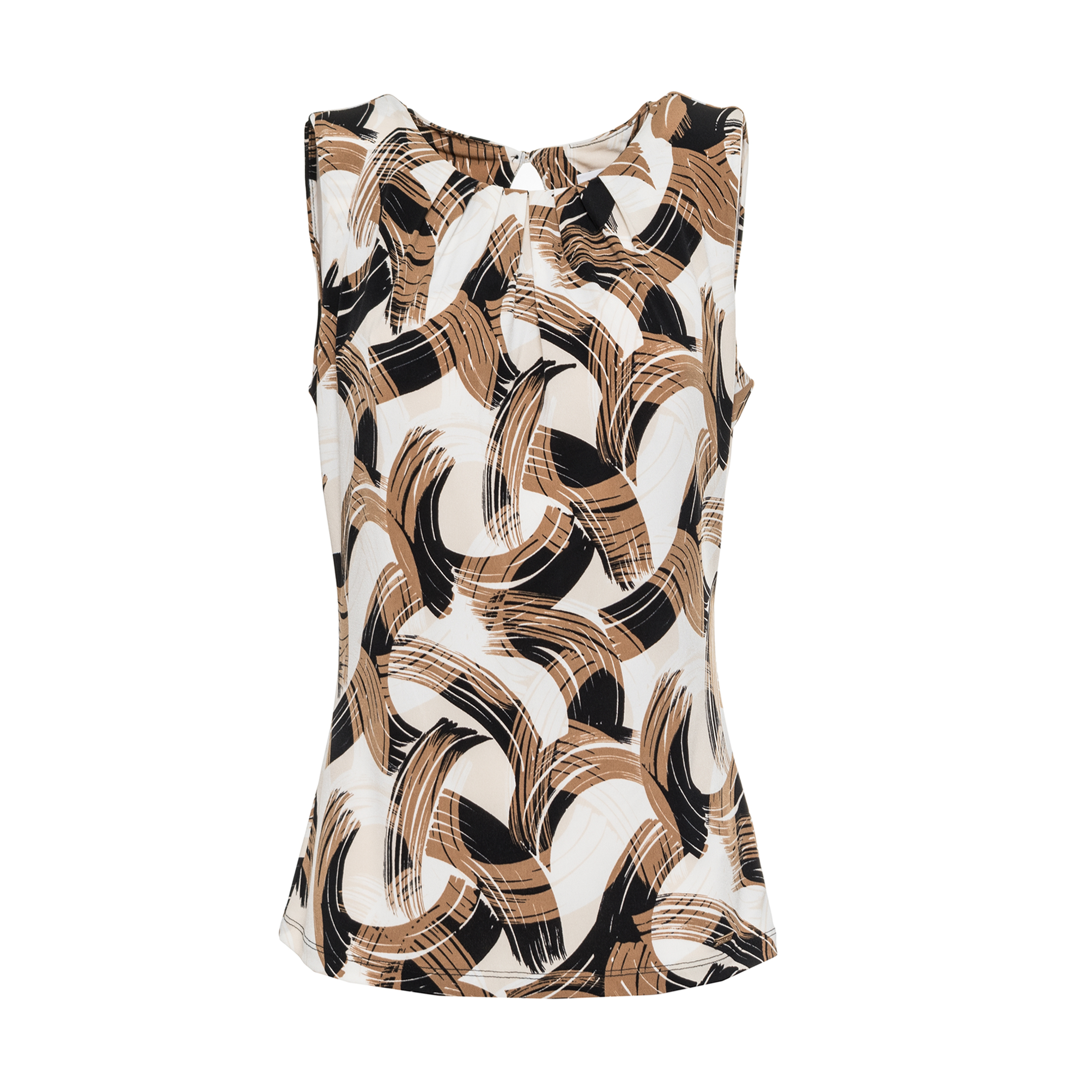BLOUSE, FOR WOMEN, ROUNDNECK, SLEEVELESS, PATTERNED, WITH LOGO