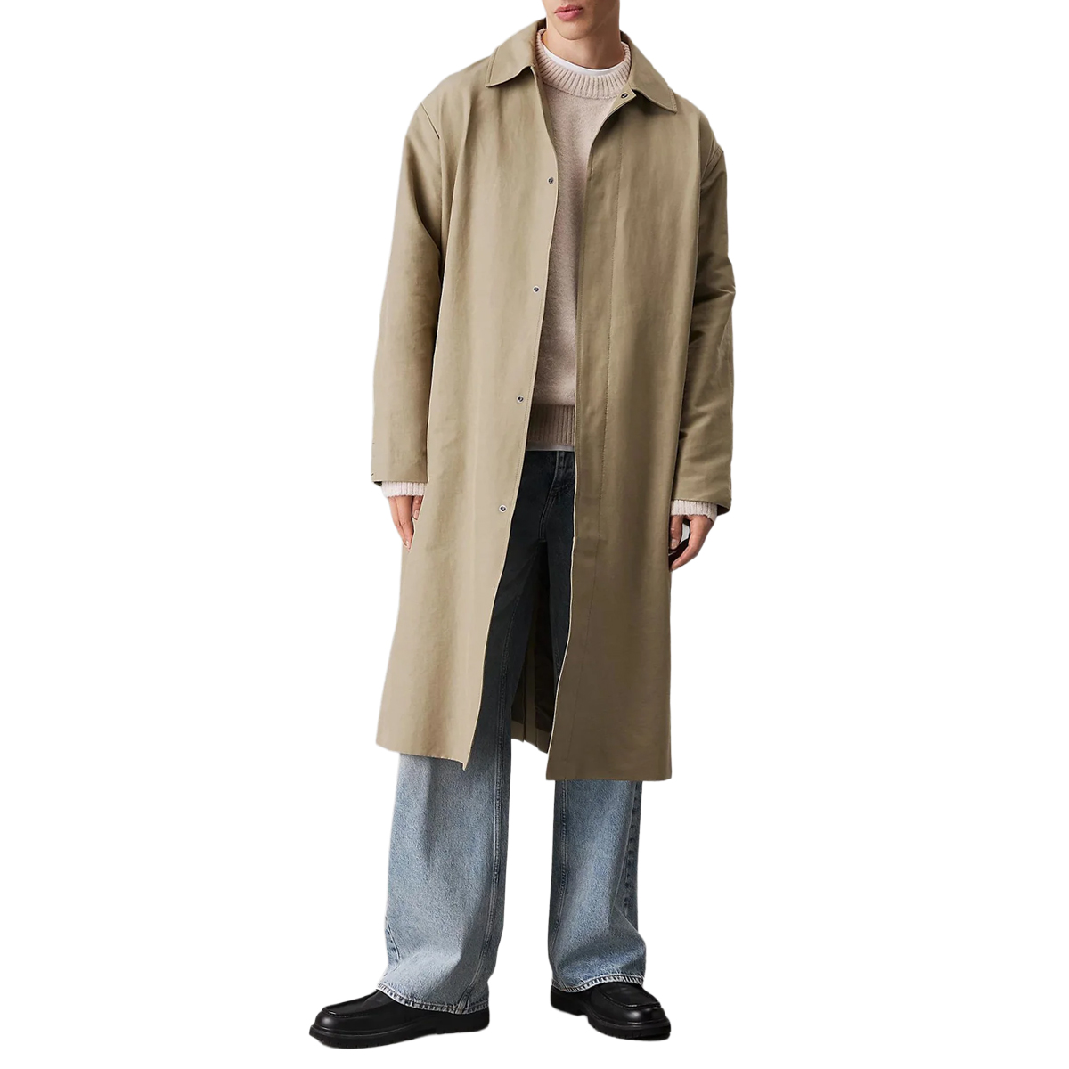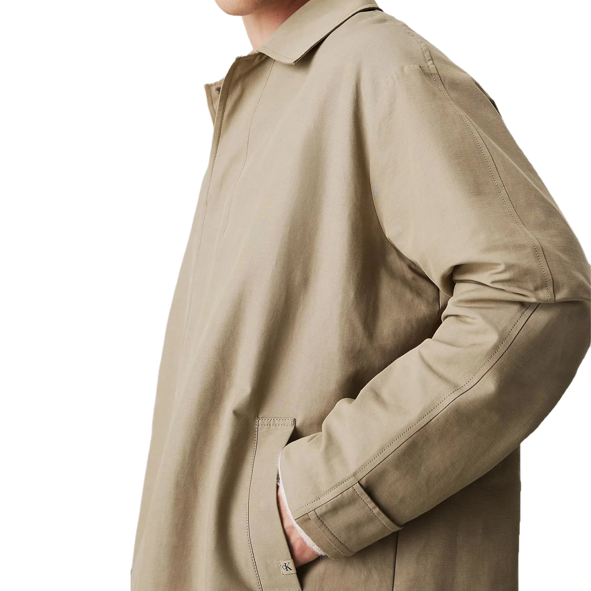 This COTTON NYLON MAC PK8 XL coat by CALVIN KLEIN JEANS presents a streamlined and versatile outerwear option for men. Its longline profile and clean design, featuring a classic collar and a concealed snap-button placket, offer an understated elegance. Practical side pockets enhance its functionality, alongside a discreet brand logo detail.Constructed from a durable 66% cotton, 28% polyamide, 6% polyester fabric, this coat provides excellent wearability and structure. The cotton component ensures breathability and softness, while polyamide adds inherent strength, and polyester contributes to shape retention, making it a reliable choice for everyday sophistication.