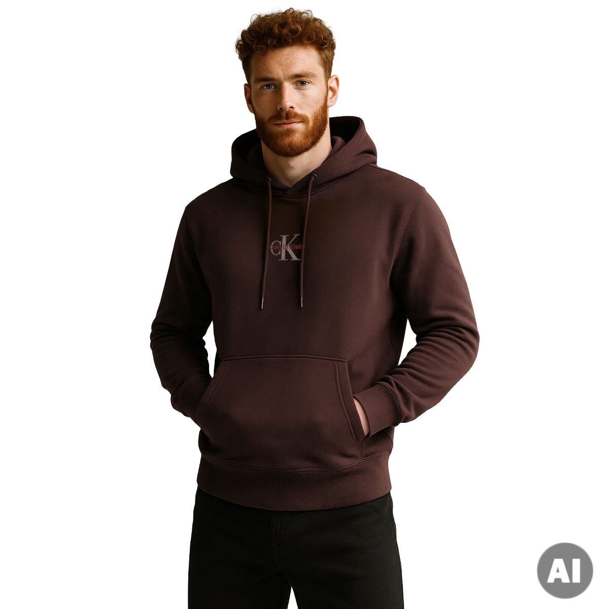SWEATSHIRT, FOR MEN, SOLID COLOUR, NO FLEECE, BRUSHED FABRIC, WITH LOGO, WITH HOOD