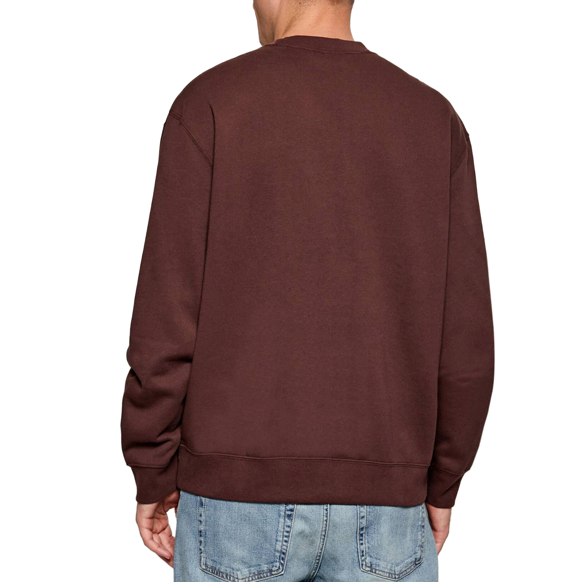 SWEATSHIRT, FOR MEN, ROUND NECK, SOLID COLOUR, FLEECE, PRINTED LOGO