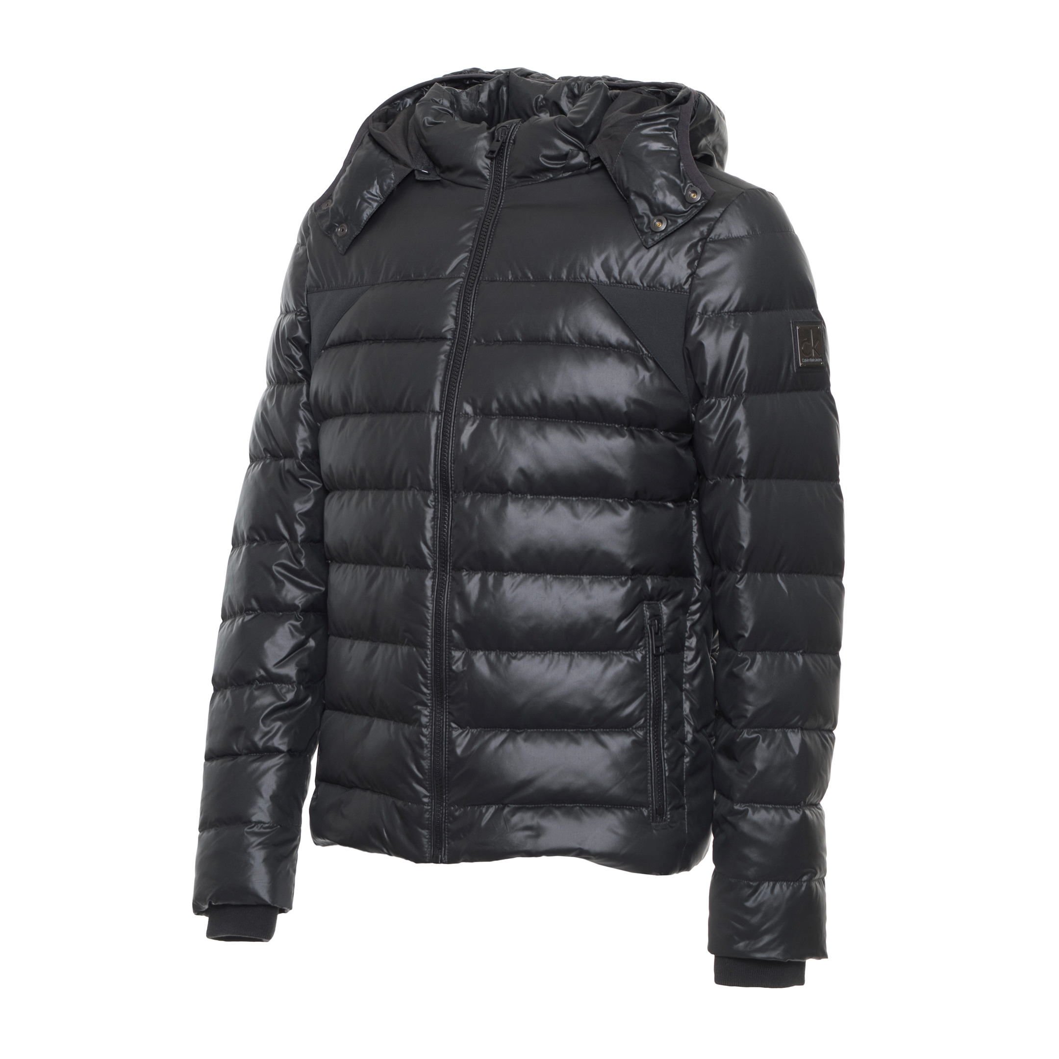 PADDED JACKET FOR MEN, ZIP CLOSURE, SOLID COLOUR, WITH HOOD, LONG SLEEVES