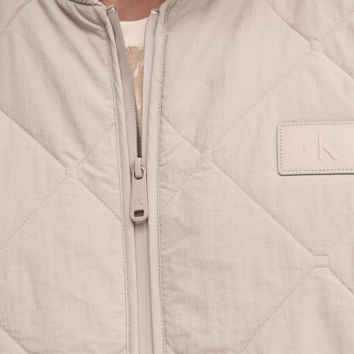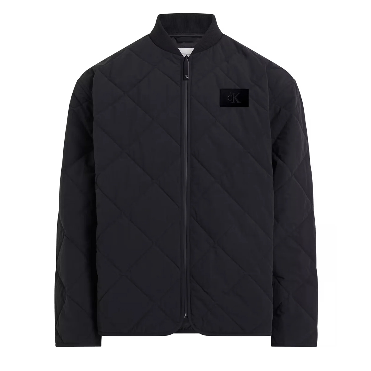 This JACKETS QUILTED JACKET PAN XXL by CALVIN KLEIN JEANS presents a contemporary interpretation of a classic design, offering a relaxed fit and a distinctive quilted texture. Its clean lines, bomber-style ribbed collar, and full-zip front closure provide a sleek and modern appearance, suitable for diverse merchandising opportunities. The tonal logo patch on the chest confirms its authentic brand identity.