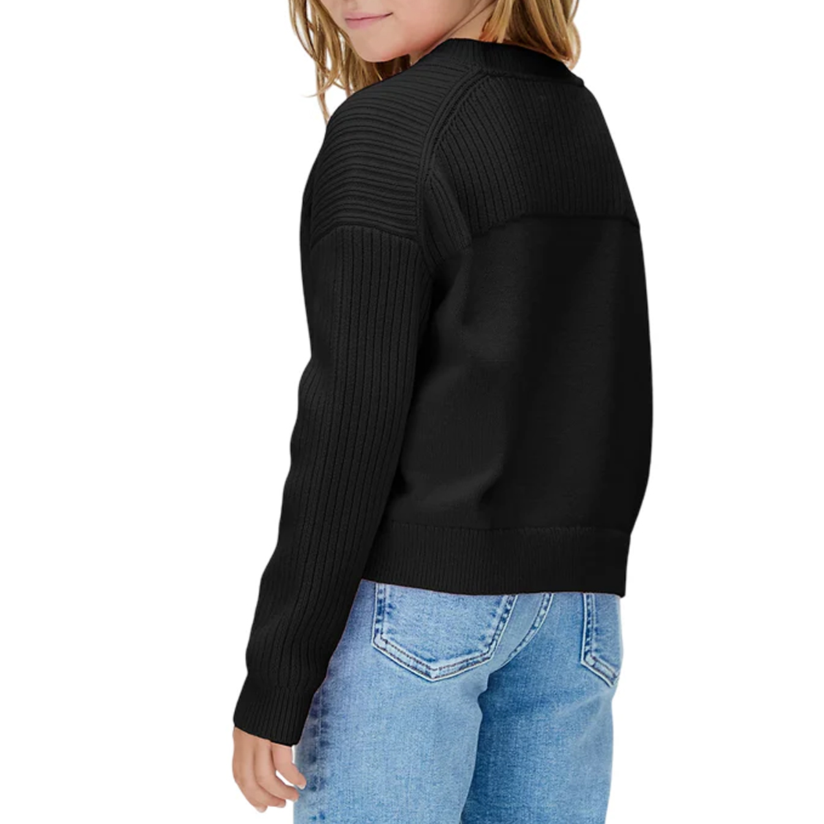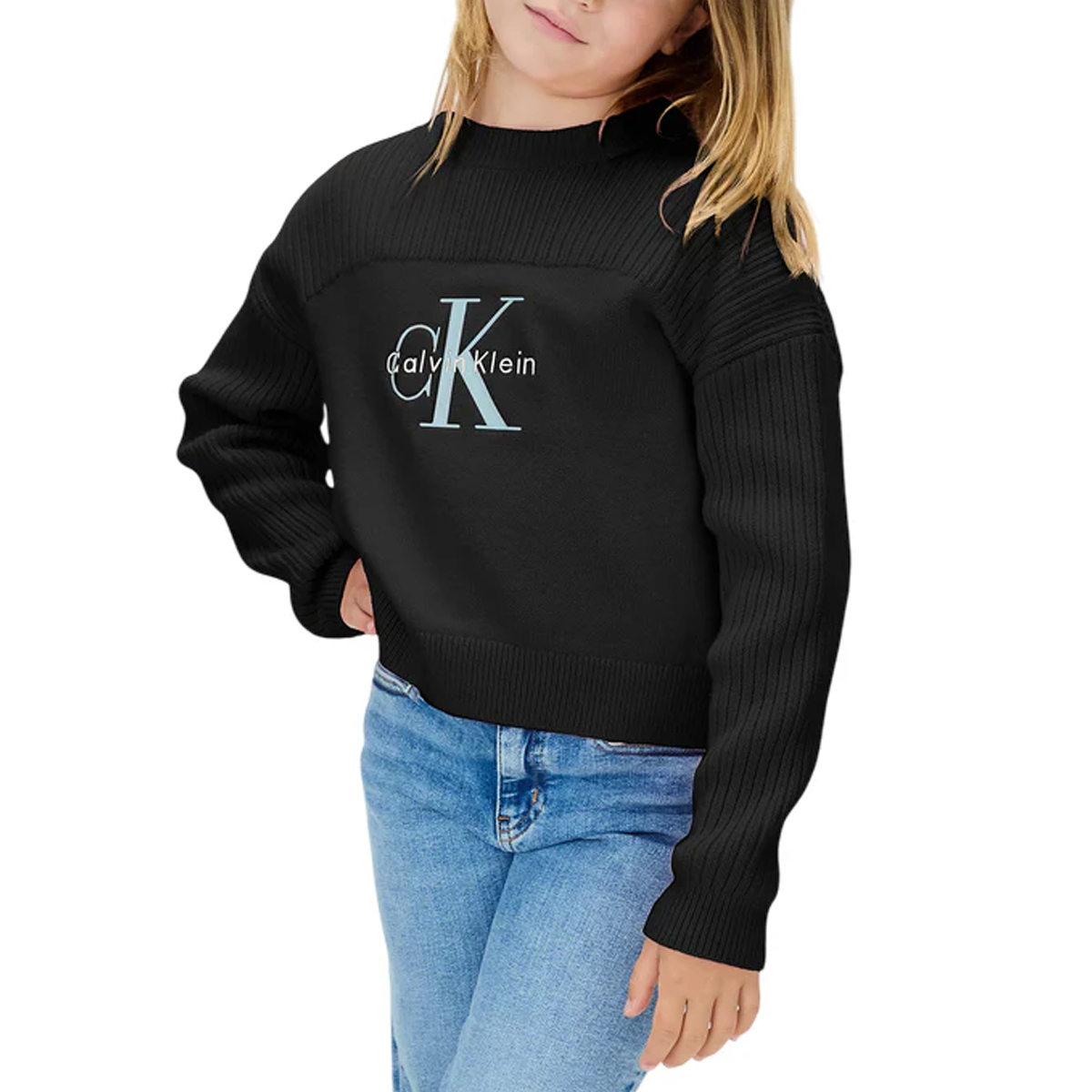 KNITWEAR, FOR GIRLS, ROUND NECK, LONG SLEEVES, SOLID COLOUR, EMBROIDERED LOGO