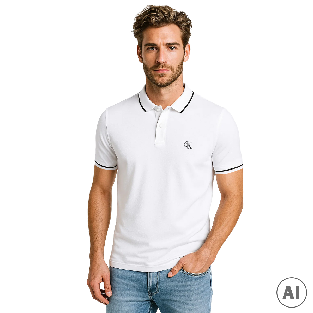 POLO SHIRT, FOR MEN, SHORT SLEEVES, BI-COLOR, EMBROIDERED LOGO, WITH BUTTONS