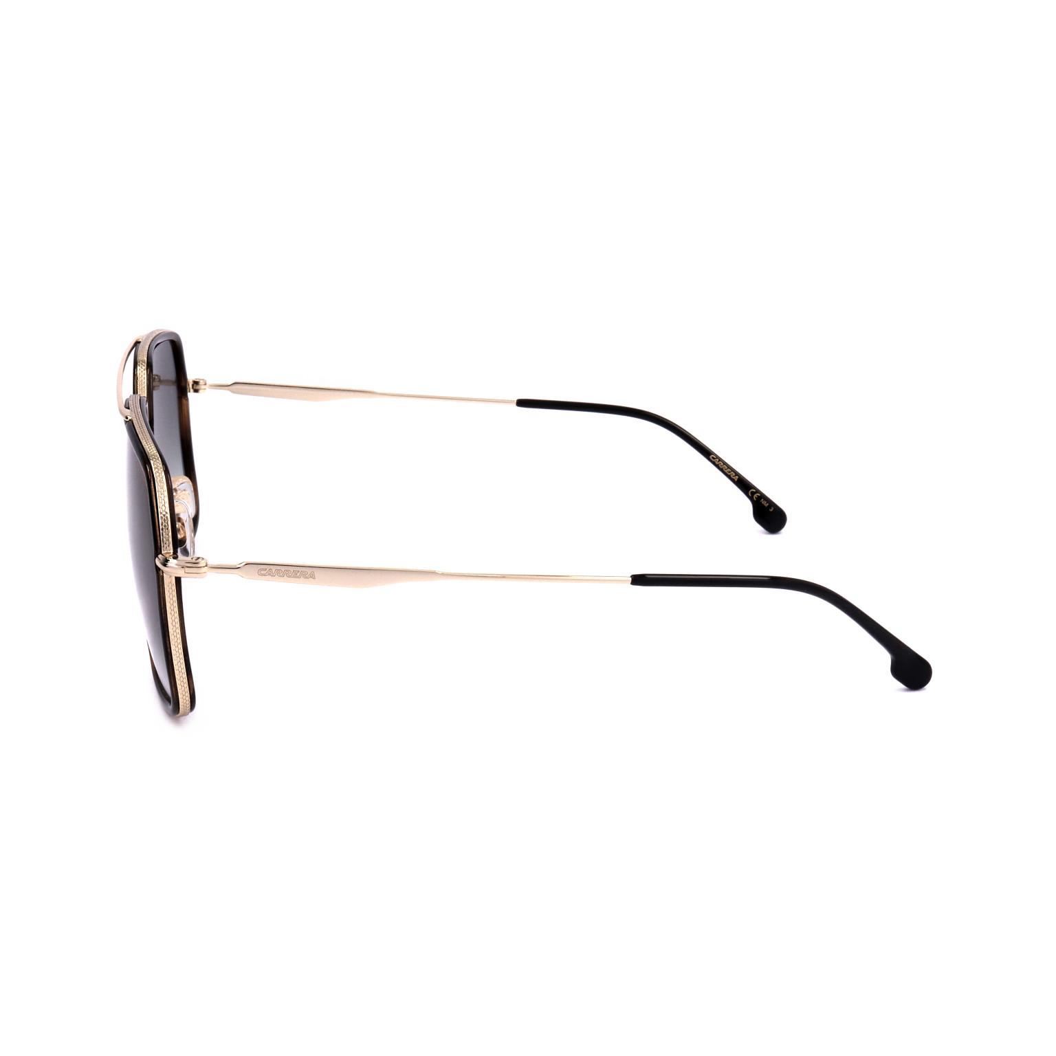 These sunglasses from CARRERA feature a compelling geometric silhouette, characterized by a sophisticated double bridge and gradient lenses. The distinctive frame surrounds the 59mm lenses, complemented by a 17mm bridge, while the sleek temples, bearing the brand's emblem, contribute to their refined profile and a sense of visual balance.