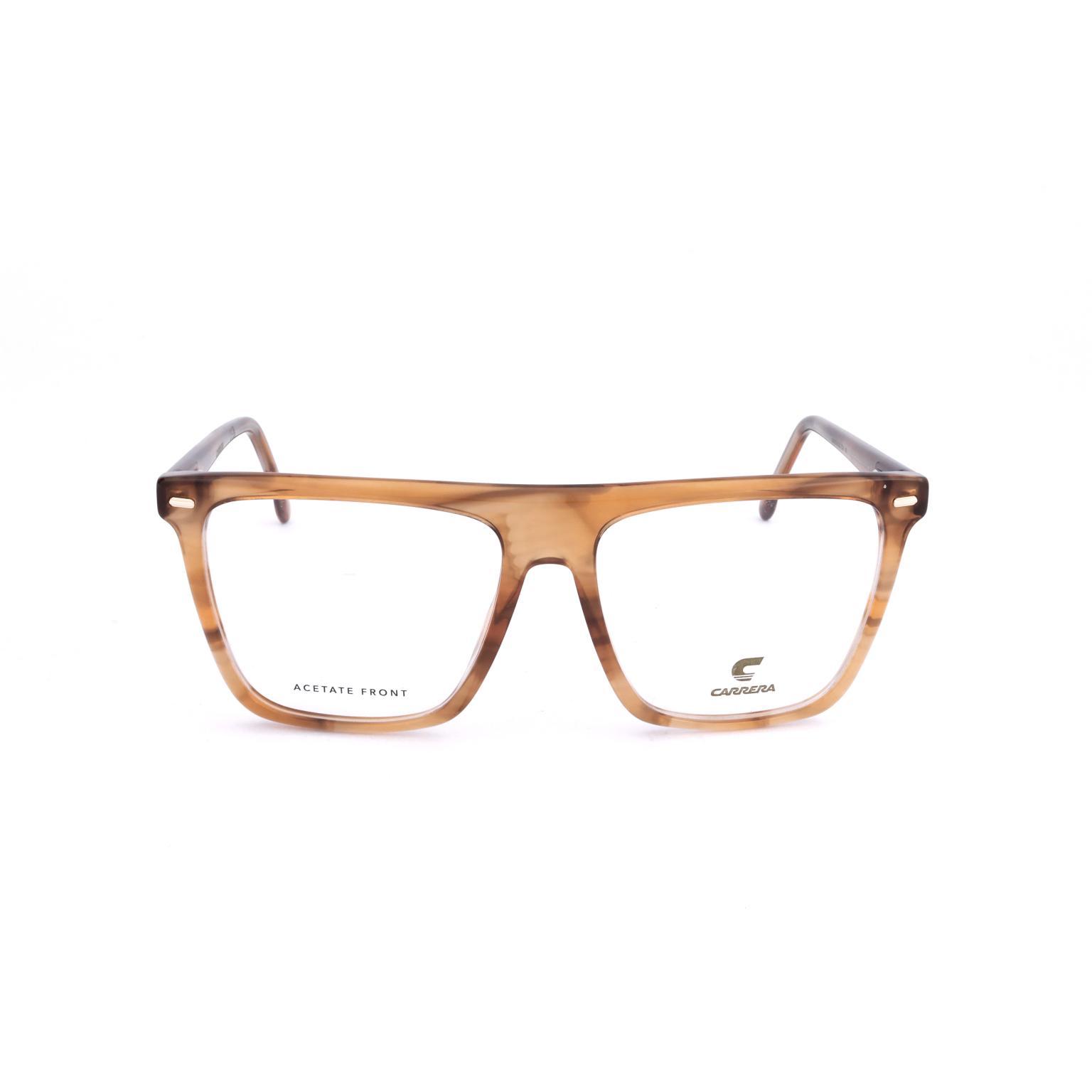 These women's sunglasses by CARRERA feature a bold, structured silhouette that commands attention. The design is characterized by a strong, flat top bar and substantial frame thickness, providing a modern and assertive profile. Subtle metallic pins at the temples underscore the thoughtful craftsmanship, adding a refined detail to the eyewear's robust presence.