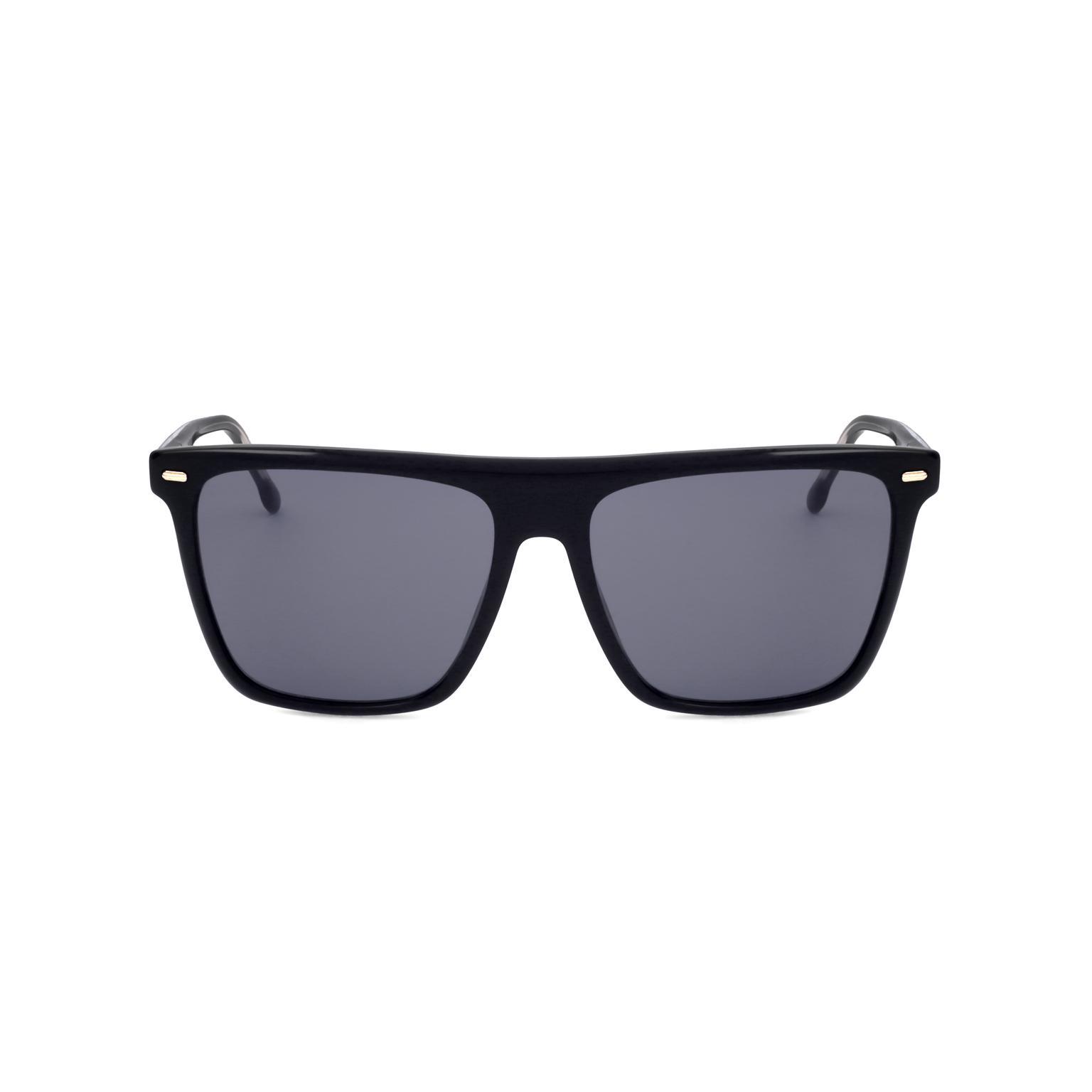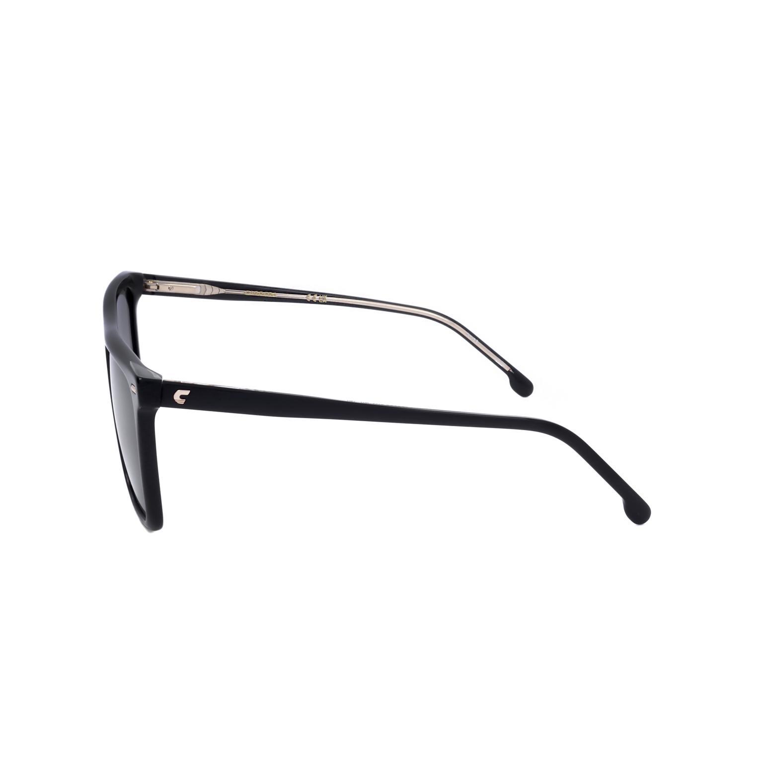 These women's sunglasses by CARRERA feature a bold, structured silhouette that commands attention. The design is characterized by a strong, flat top bar and substantial frame thickness, providing a modern and assertive profile. Subtle metallic pins at the temples underscore the thoughtful craftsmanship, adding a refined detail to the eyewear's robust presence.