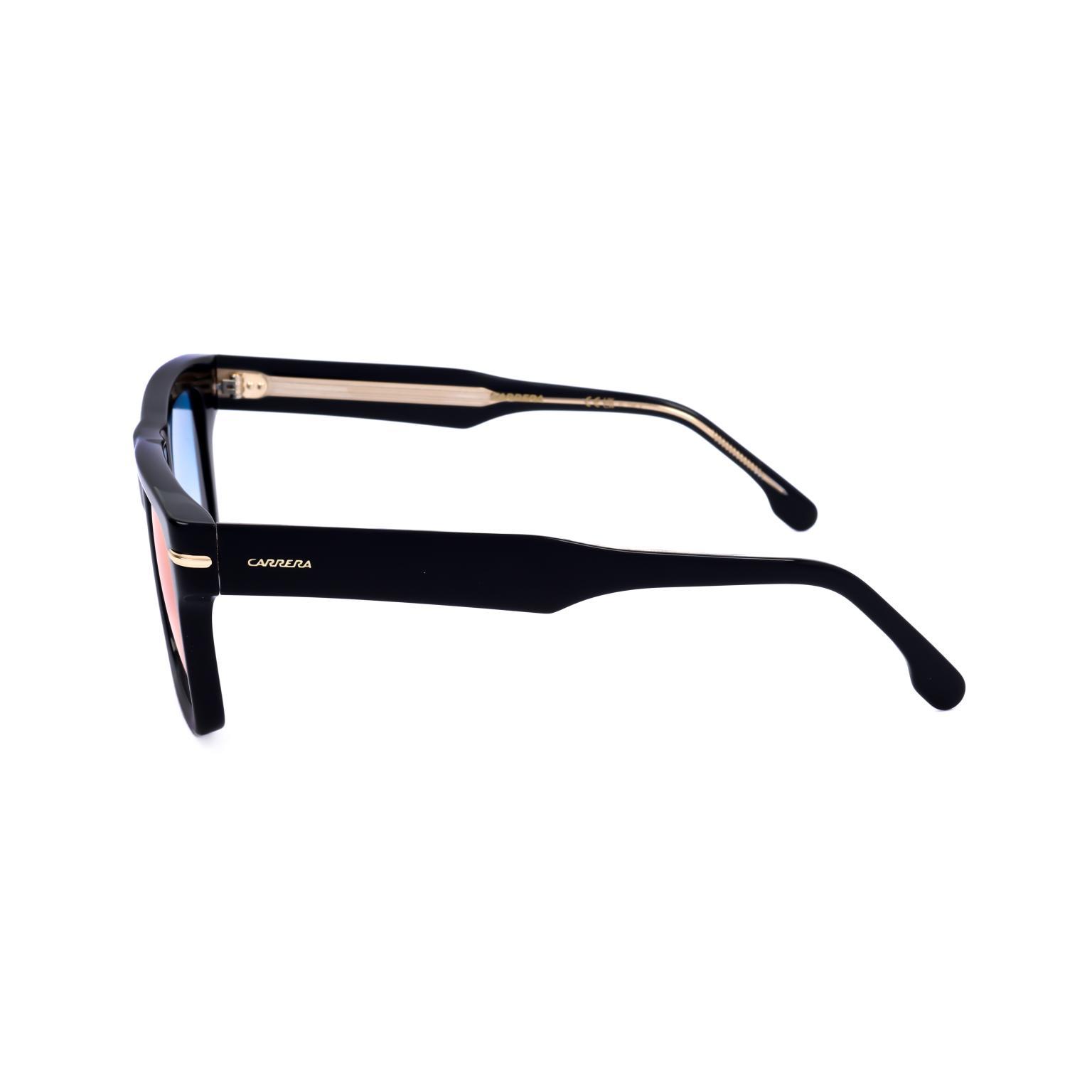 These CARRERA sunglasses showcase a distinct rectangular silhouette, providing a confident and clean aesthetic. The substantial frame front, characterized by its straight upper line and subtle lower curve, lends a powerful visual statement. Fine metallic accents at the temples contribute to their refined construction.Crafted from premium acetate, these eyewear pieces offer exceptional durability and a luxurious feel. Acetate is valued for its robust yet lightweight properties, allowing for a comfortable fit and a lasting, polished appearance. This material choice ensures a resilient product that retains its integrity and appeal.